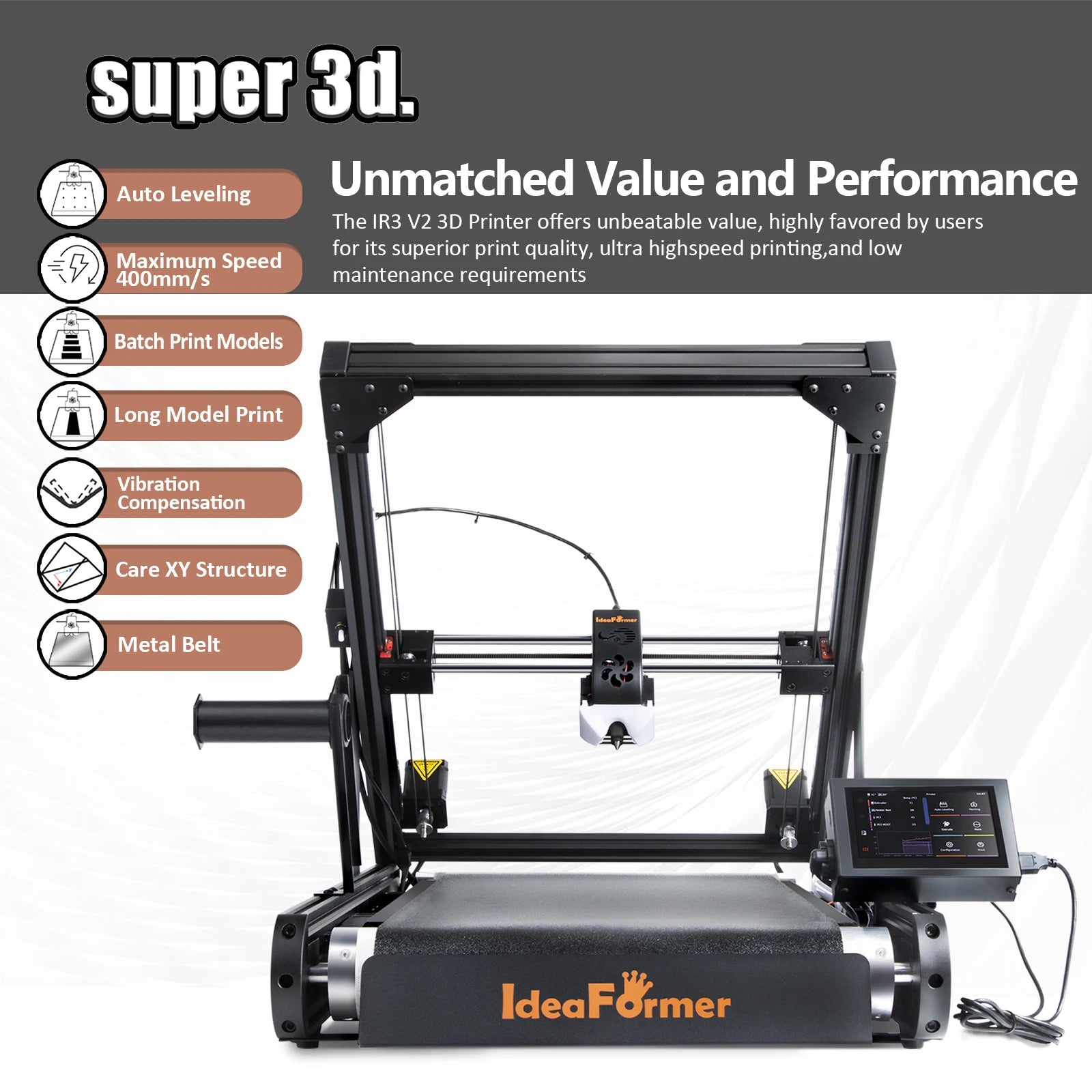 IdeaFormer IR3 V2 FDM 3D Printer Auto Leveling Core XY Stable Structure Infinite Z-Axis Steel Conveyor Belt With Extended Tray