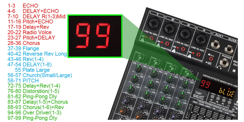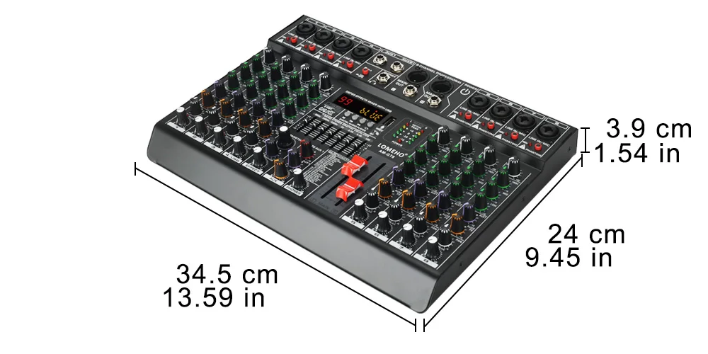 LOMEHO 7 Band EQ audio sound mixer table 6/8 mono mhannels mixing dj console with usb 2 aux output channel separately 48V 99 digital effect