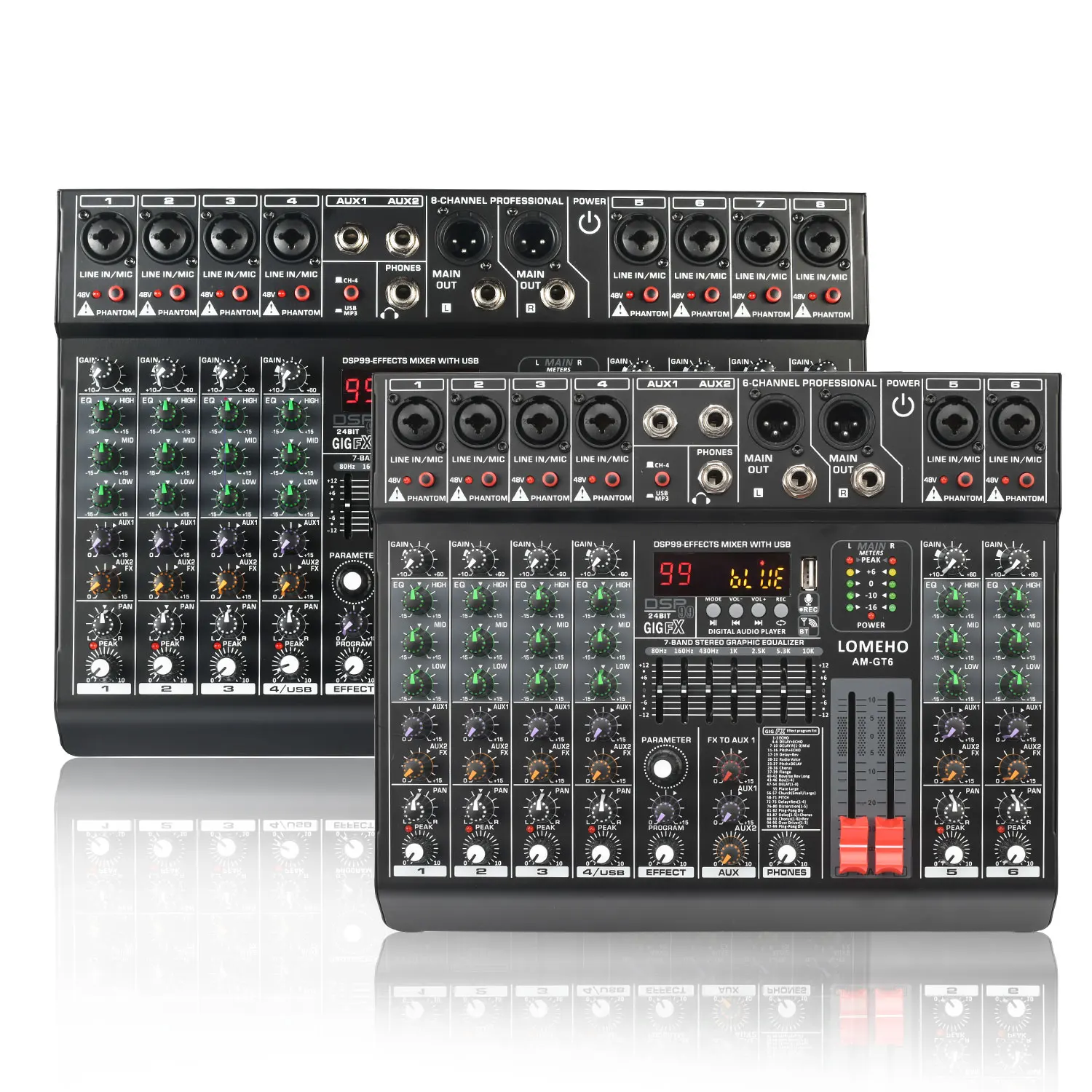 LOMEHO 7 Band EQ Audio Sound Mixer Table 6/8 Channel Mixing DJ Console with USB 2 AUX Output Individual 48V 99 Effect AM-GT6/8