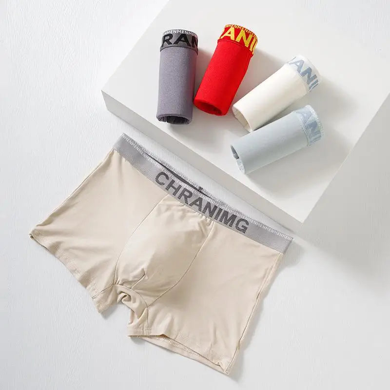 Men Letter Print Boxer Briefs Elastic Mid Waist Letter Pattern Underwear Seamless Breathable Underpants Shorts Comfortable-Soft