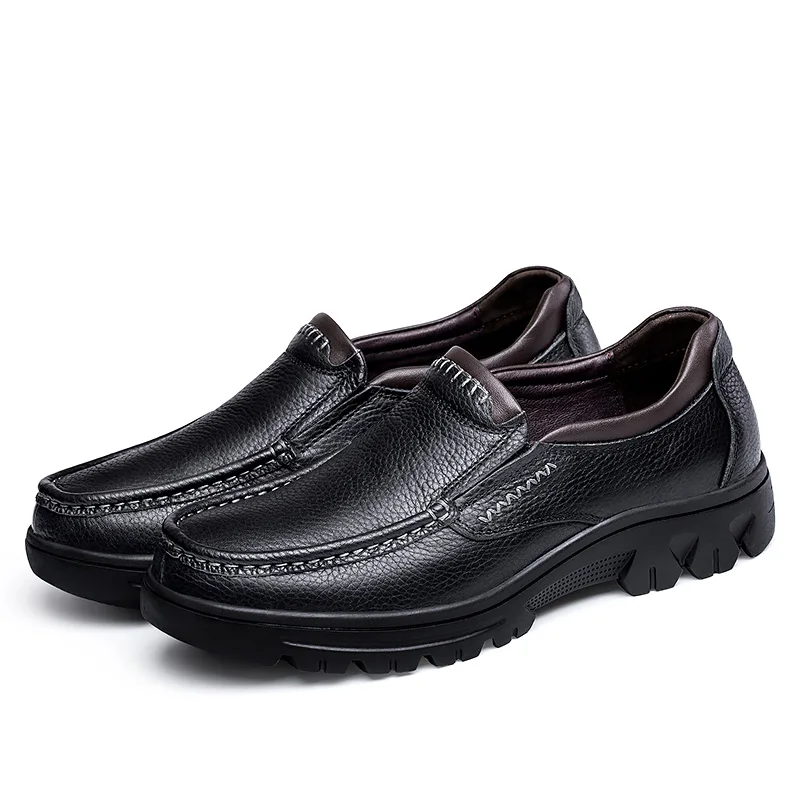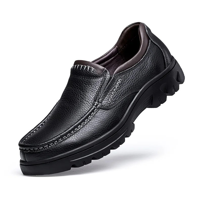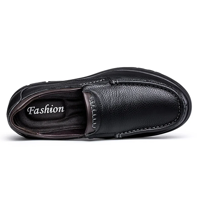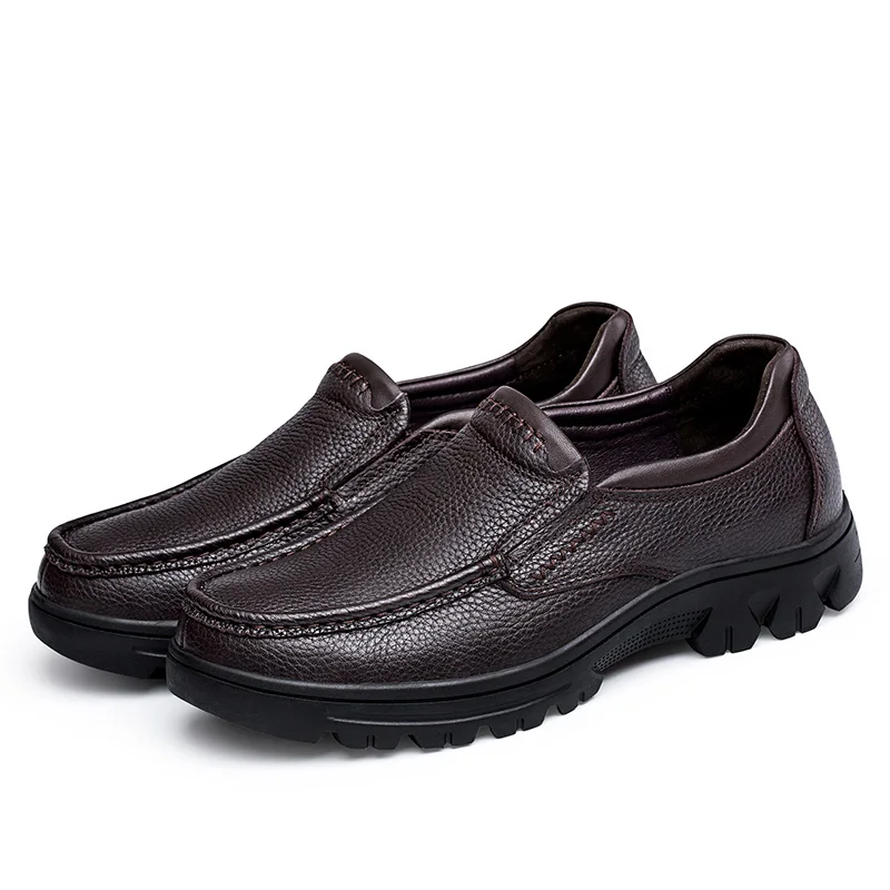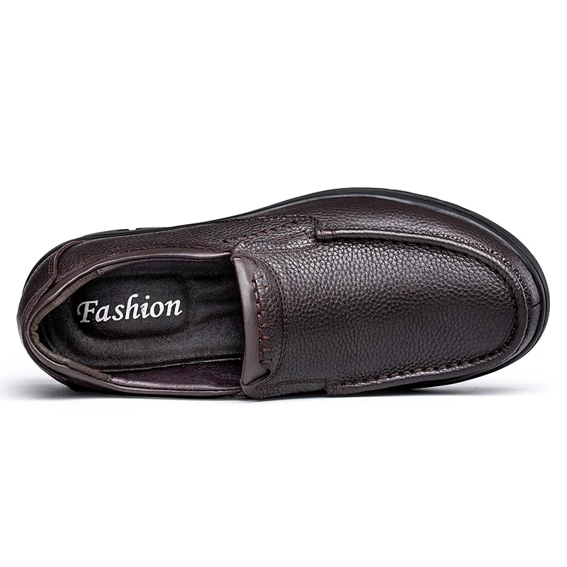Men's Genuine Leather Slip-On Oxford Shoes Dress Loafers Business Casual Office Steel Plate Supporting Black/Brown Plus Big Size