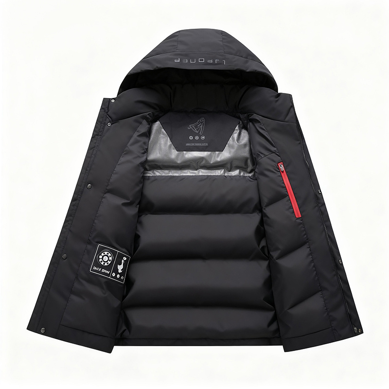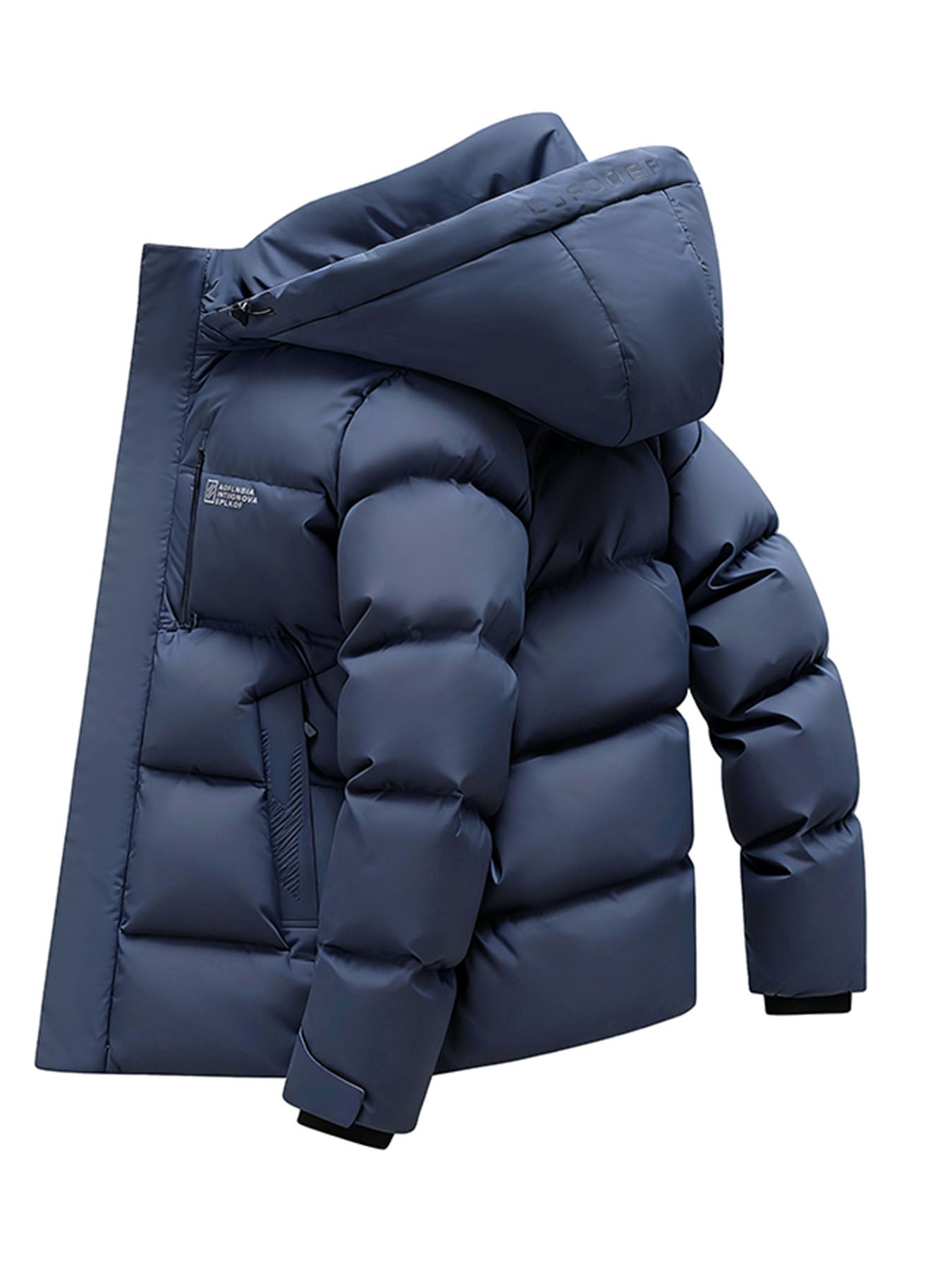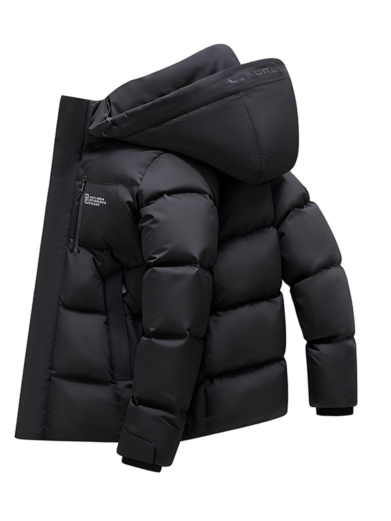 Men's Winter Down Jacket with Hood - Heavy-Duty Weather, Coat, Hand Washable, Solid Color Outdoor Winter Clothing (Fill Power & Quality Vary)