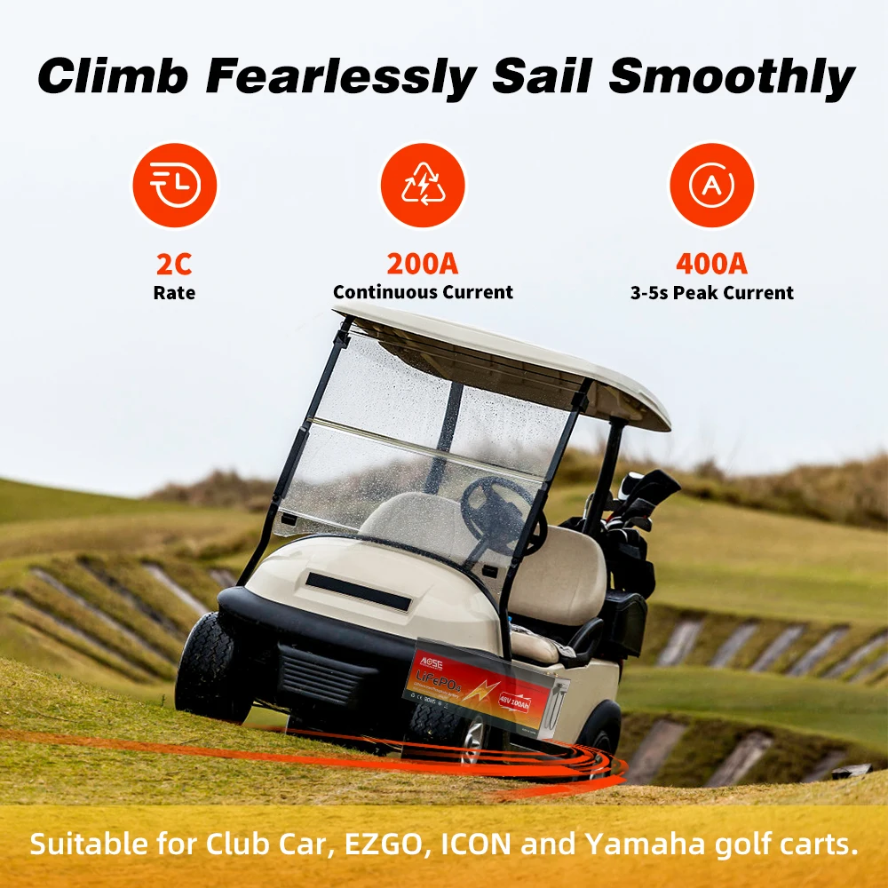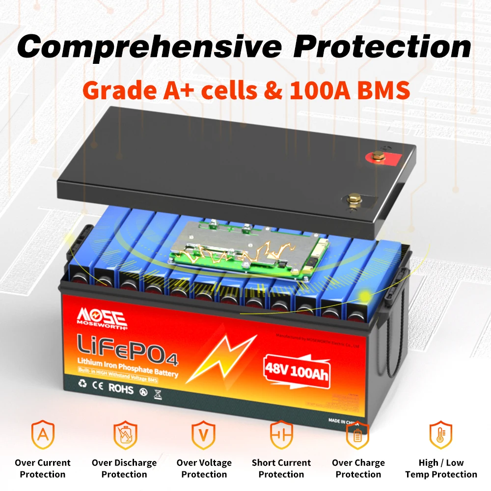 MOSEWORTH 48V 100Ah LiFepo4 Battery Built in 200A BMS 10000+ Cycles Rechargeable for Golf Carts Boat Trolling Motor Lawn Mower