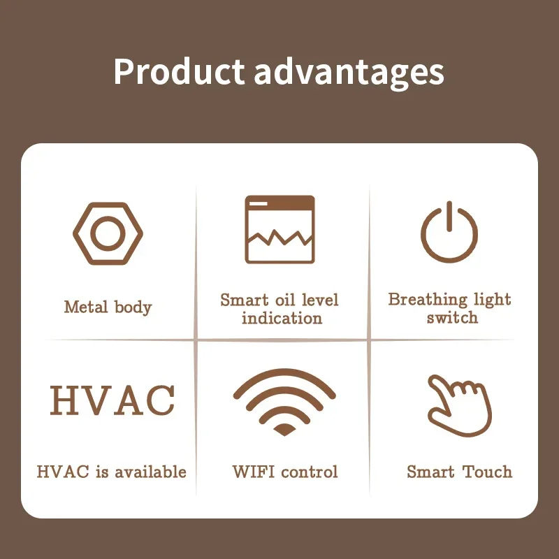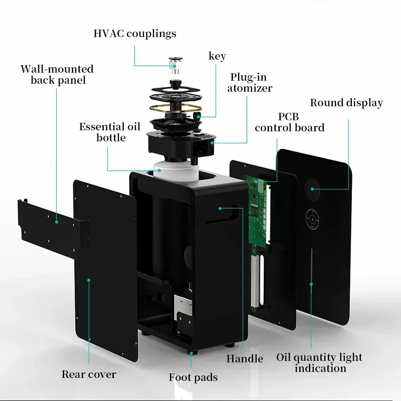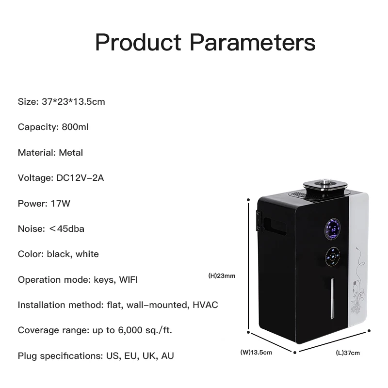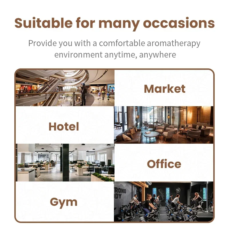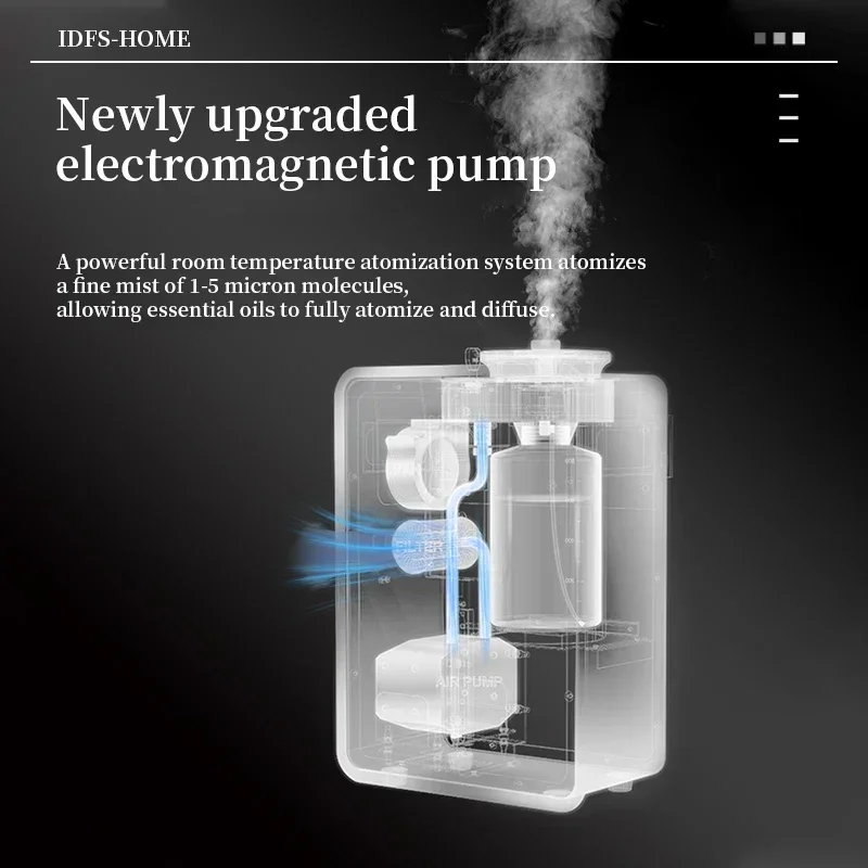1.Uses patented cold-air diffusion scenting technology, a heat-free system to disperse essential oil molecules into the air