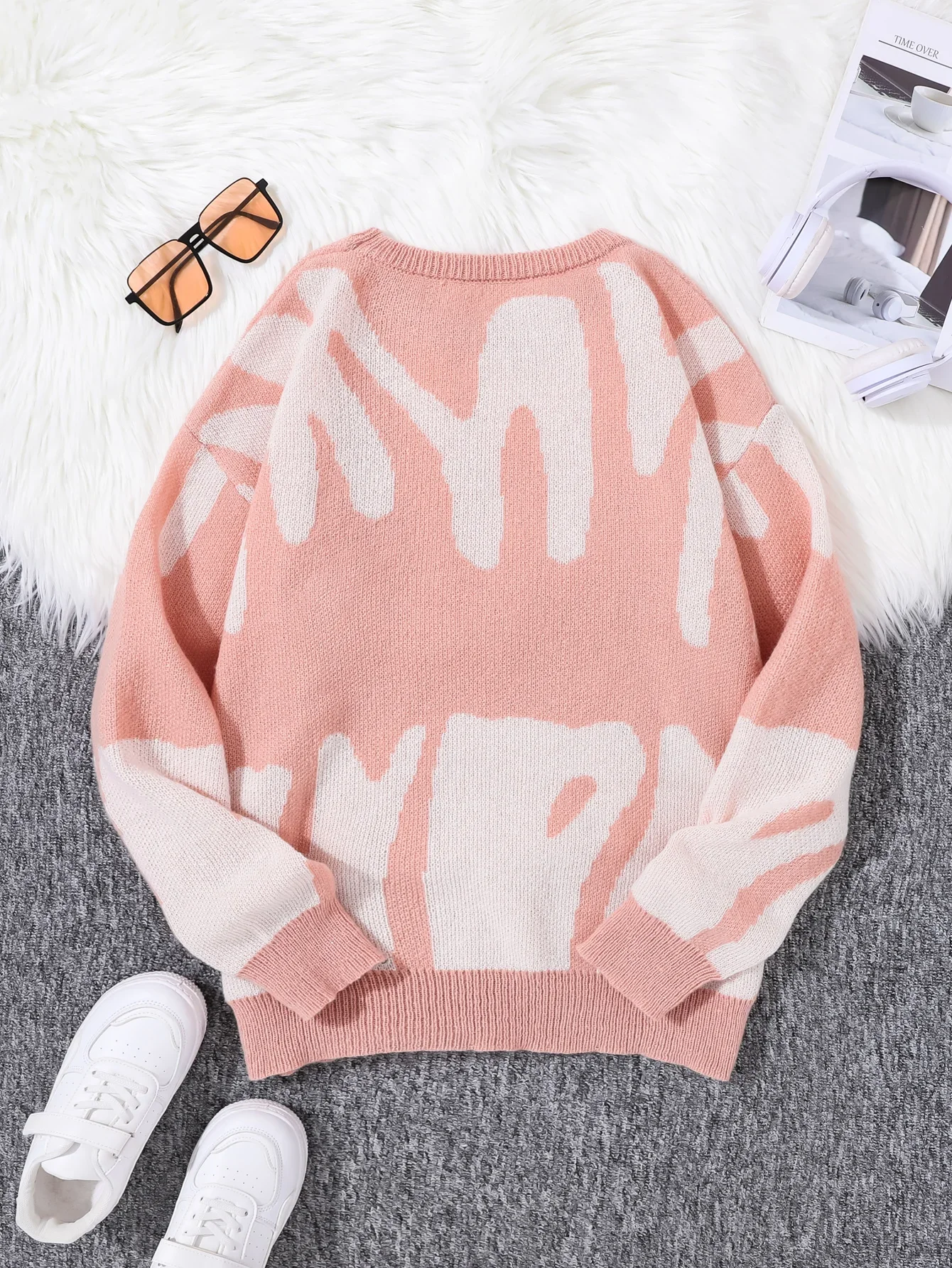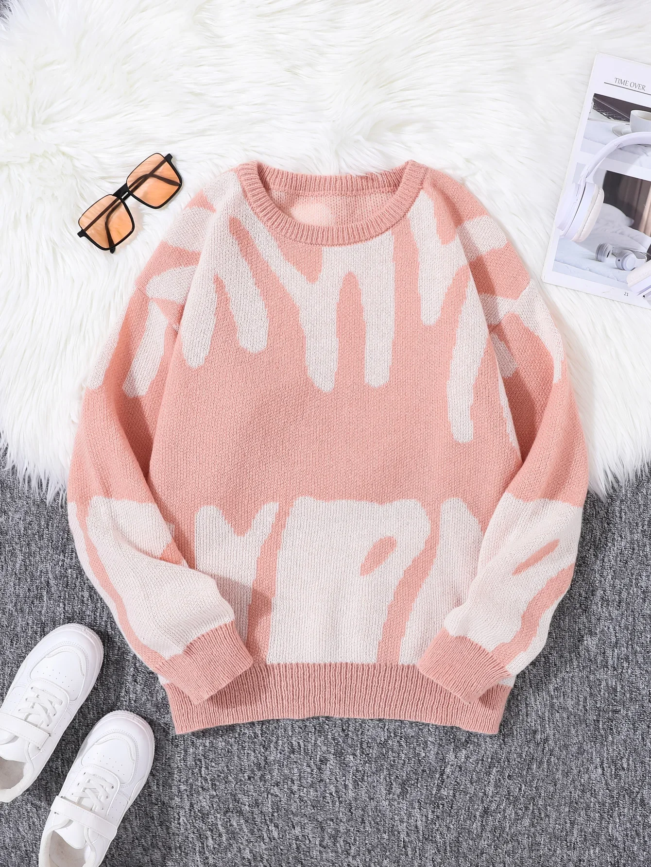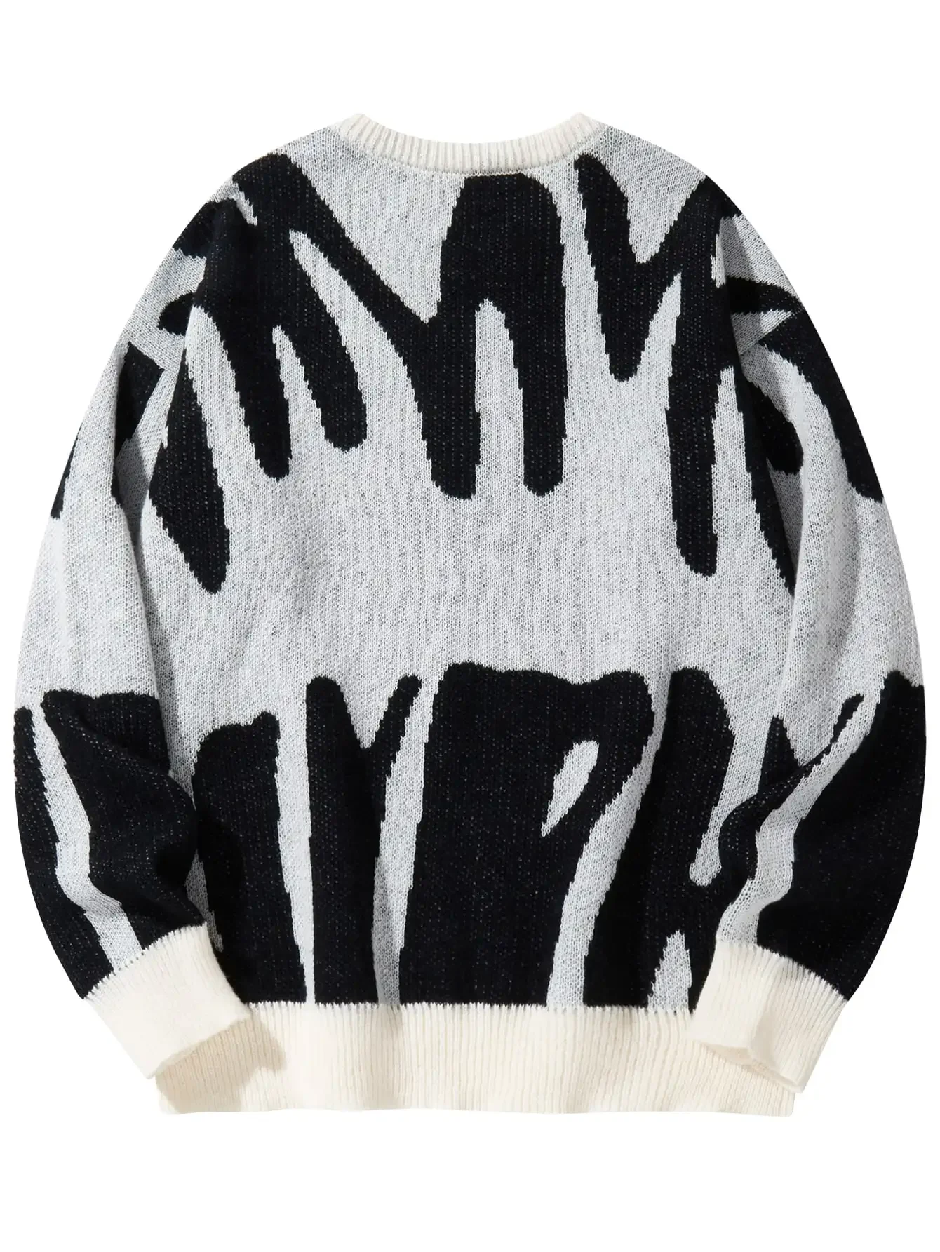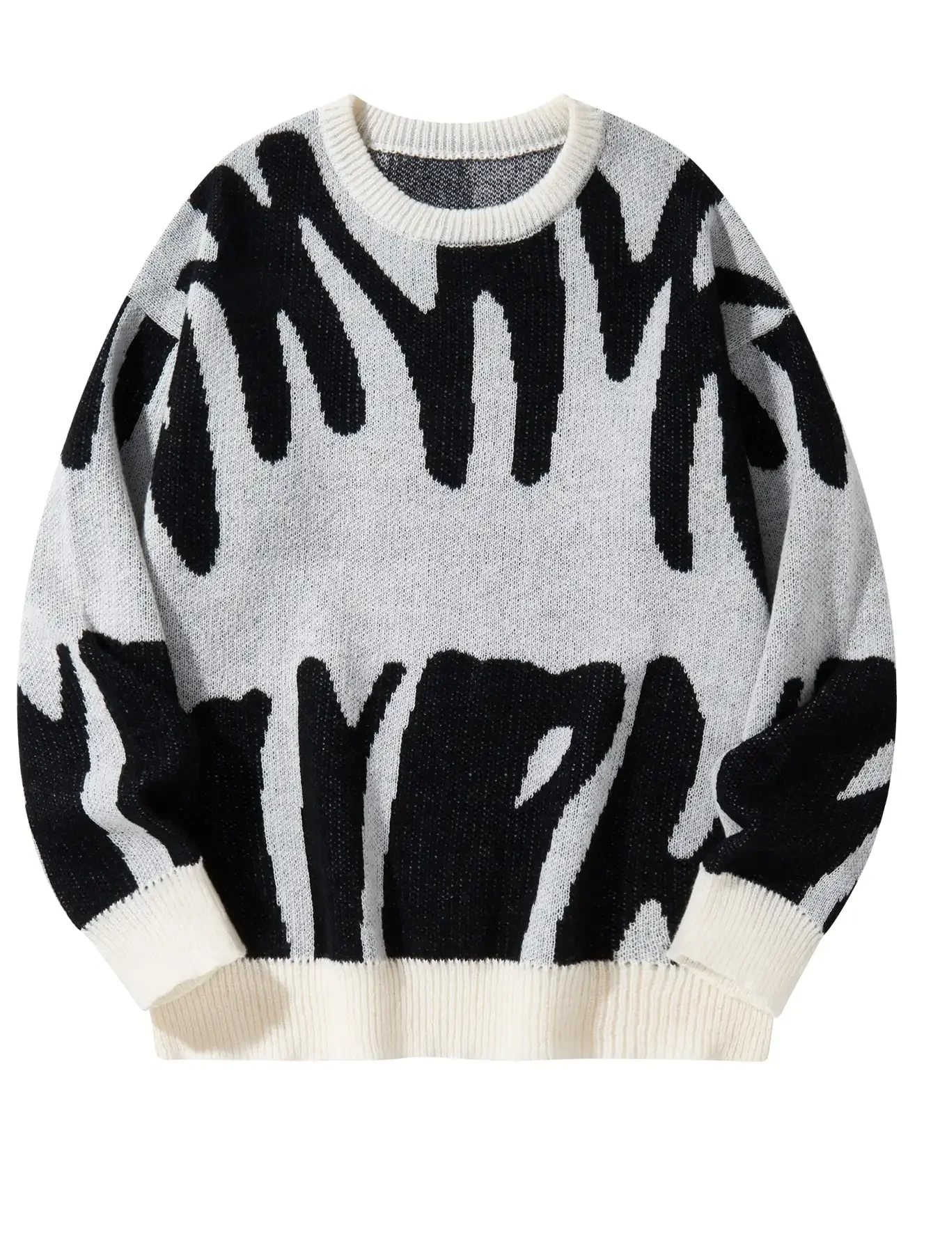 New Popular Autumn Winter Irregular Jacquard Pattern Pullover Sweater Casual Round Neck Contrast Color Knitted Men's Pullover