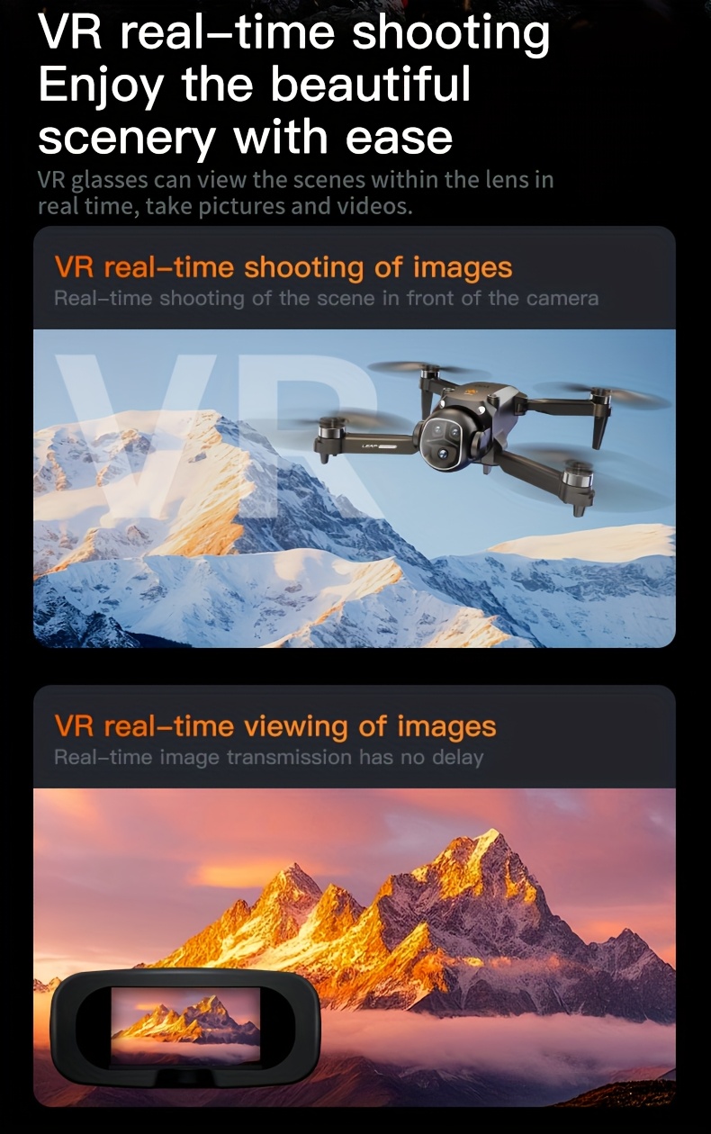 New VR Folding Drone - Equipped with Head-mounted VR Glasses, 360° Flip, 90° Adjustable Motorized Camera, Brushless Motors, Optical Flow Positioning, Altitude Hold Function, Three-speed Switching, One Button Take-off/landin