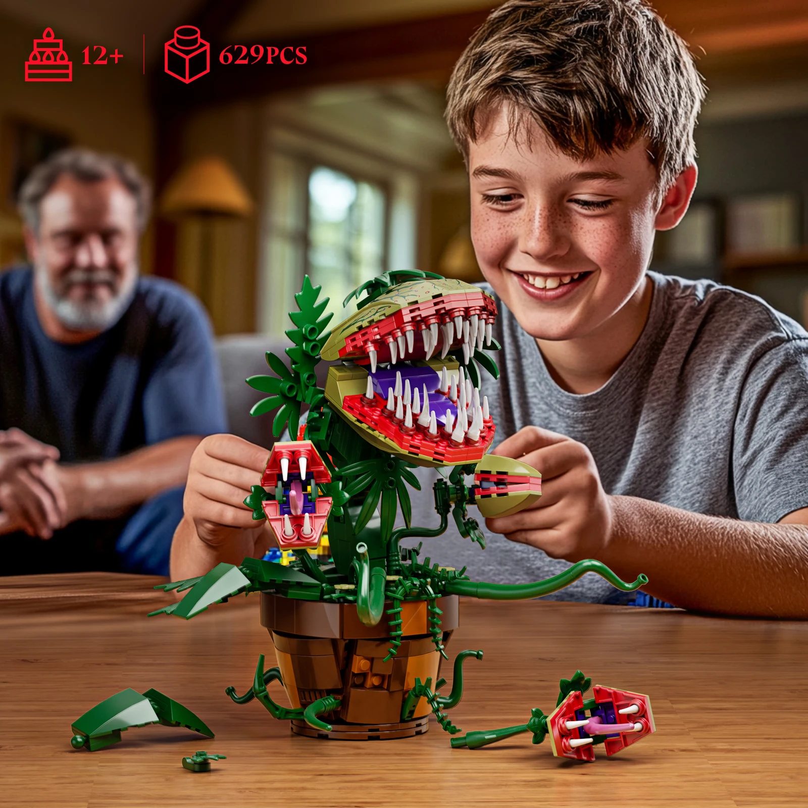 【Audrey II Kits】This is the upgraded version of Audrey II building block plant flower in the horror flower shop. We restore this plant with 629pcs blocks and several stickers, and also design exquisite gift boxes