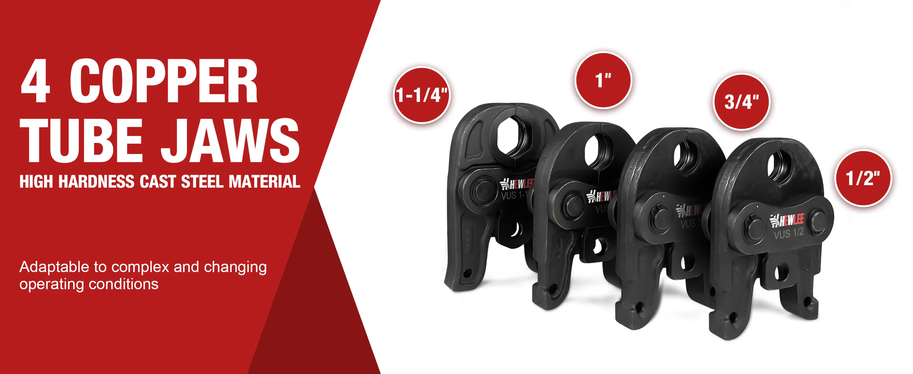 【4 Jaws Fittings & 99%】The copper crimper is equipped with 4 jaws upgraded press fittings for all brands of 1/2" , 3/4" , 1" , 1-1/4" U.S. standard copper and stainless steel pipe sizes, enough to cover 99% of copper pipe crimping jobs