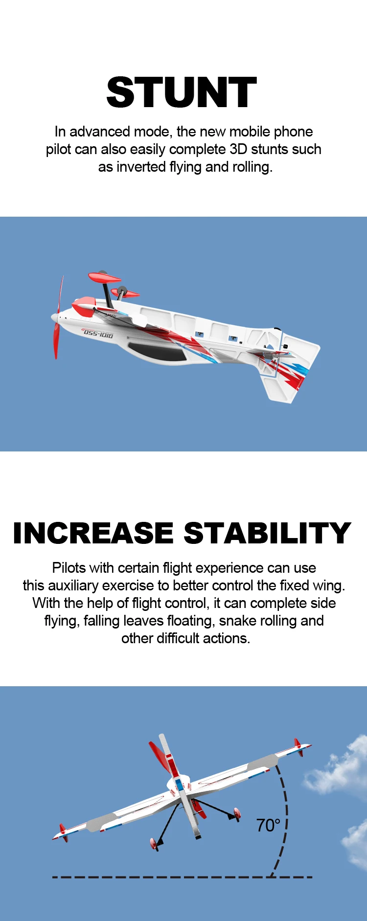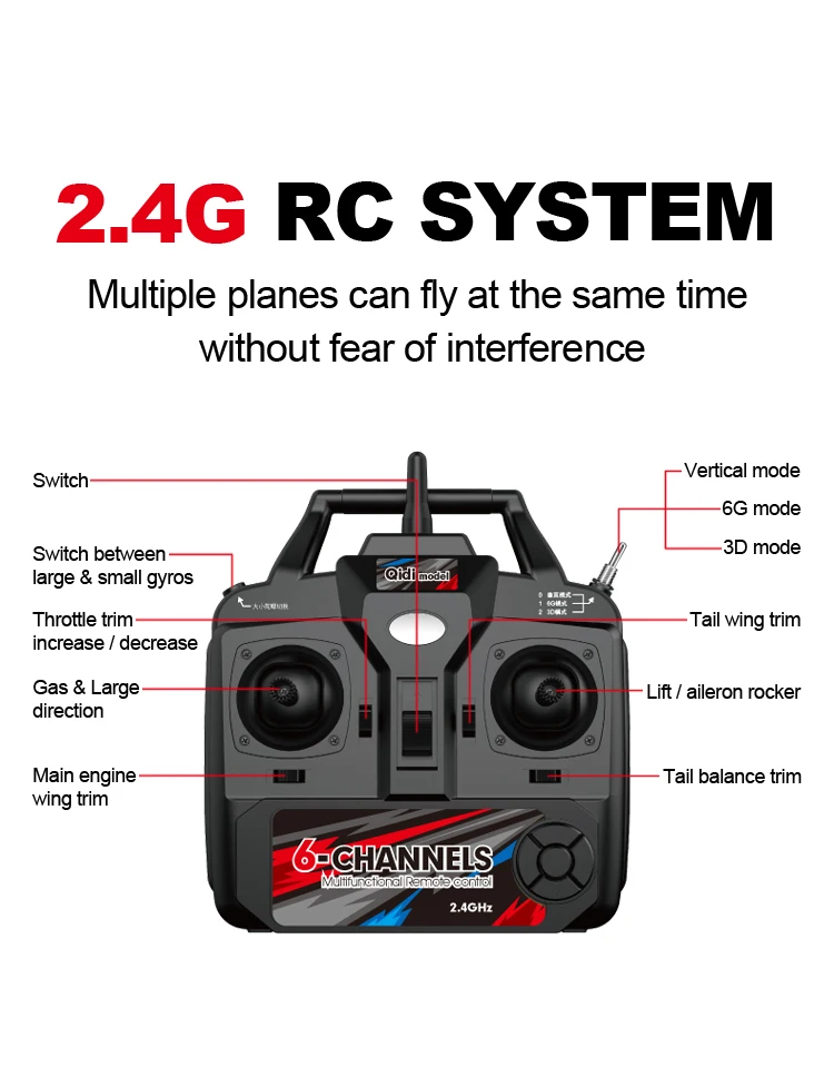 Automatic balance 4-pass gliding remote control aircraft (rise, fall, left turn, right turn, front roll, 3D crane flight
