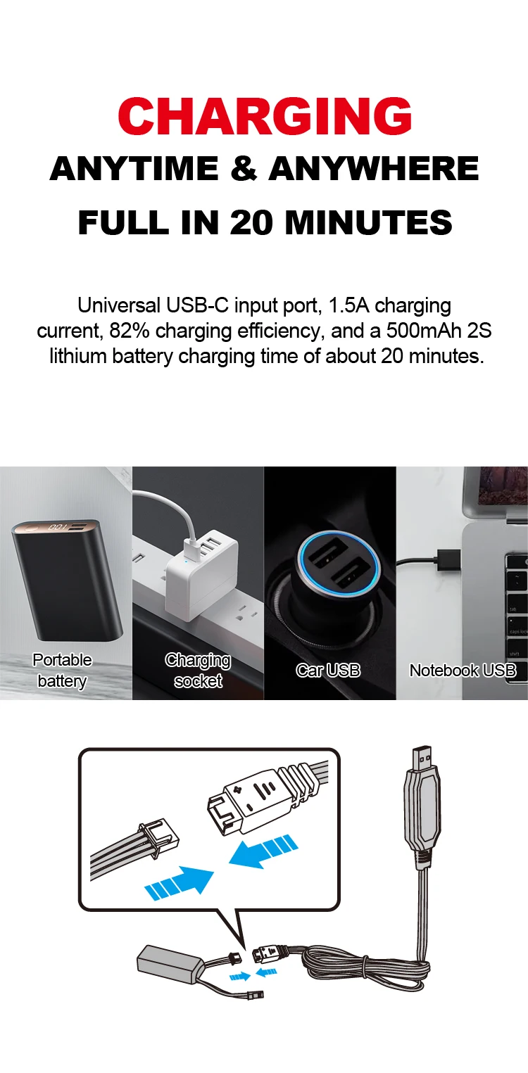 Charging Voltage: 7.4V 500mAh
