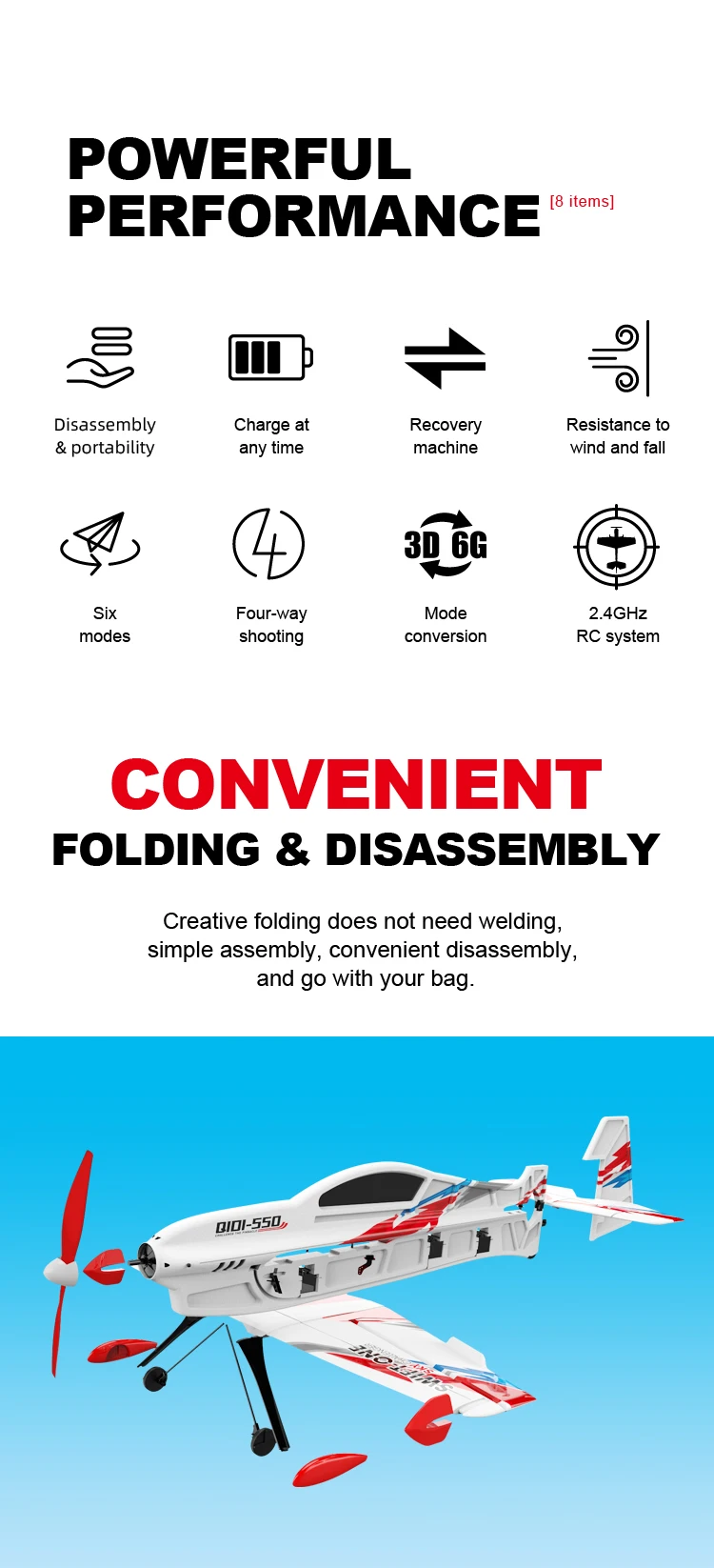 QIDI550 RC Plane Brushless Motor 2.4G Remote Control Aircraft 3D Stunt Glider EPP Foam Flight Airplane Toys US Shipping