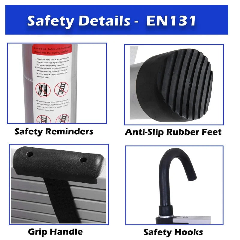Multi-Purpose 6.2M 20ft Step Telescoping Extension Ladder with Detachable Hooks Anti-Slip Aluminum Telescoping Ladder 330 LB Load