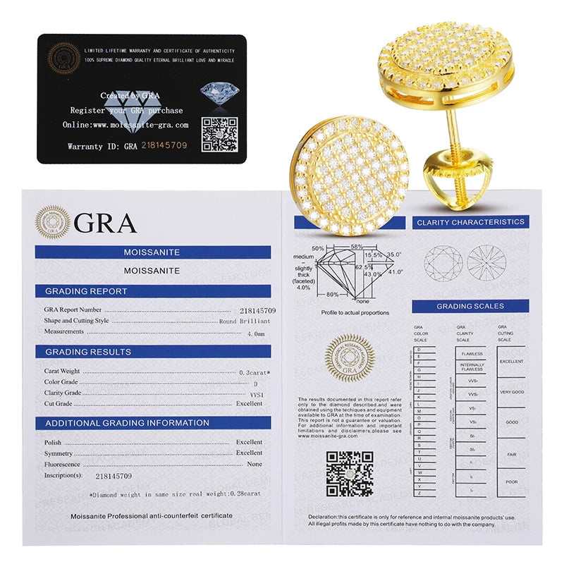 Real D Color Moissanite Stud Earrings For Women 100% 925 Sterling Silver Round Sparkling Wedding Jewelry Earrings 2021 Trend