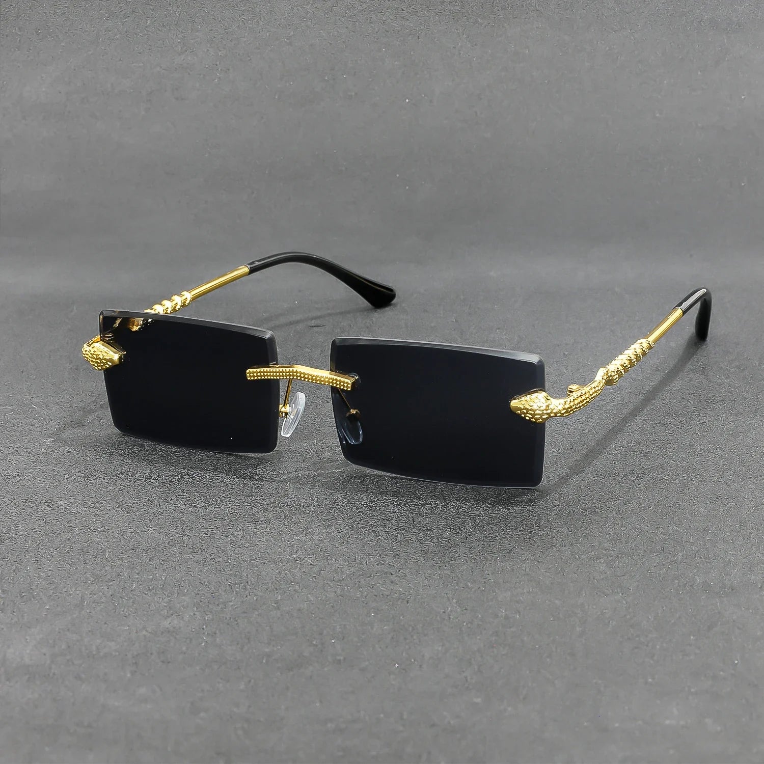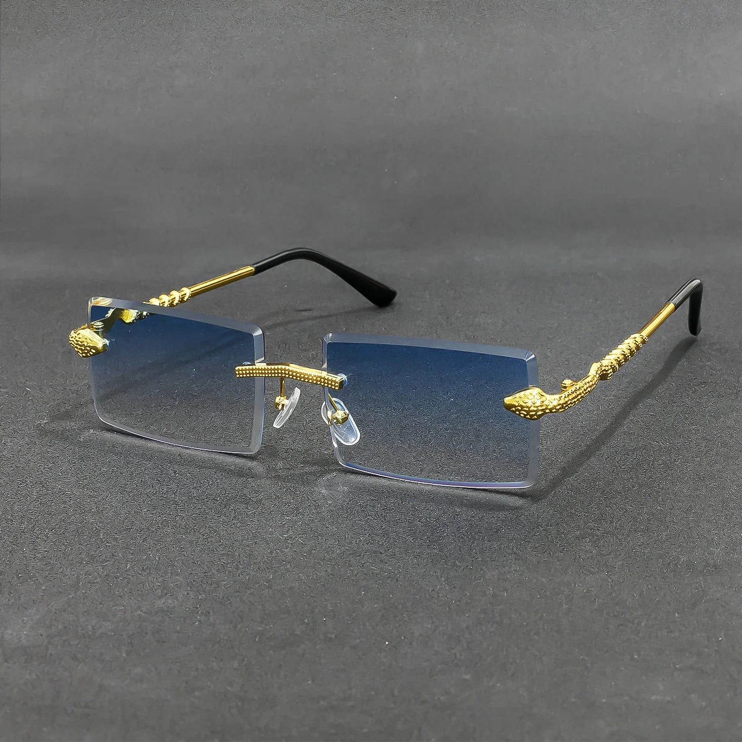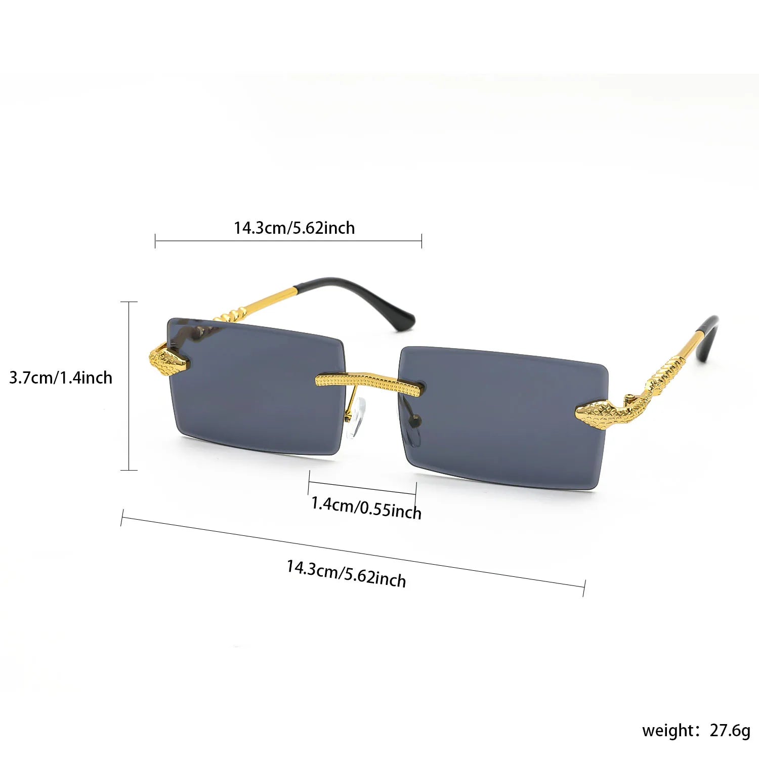 Rimless Rectangle Sunglasses Men Metal Gradient Gray Lens Big Frameless Sun Glasses Women UV400