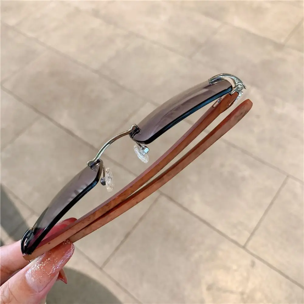 Rimless Sunglasses Men Women Wooden Pattern Luxury Brand Retro Square Sun Glasses Fashion Shades UV400 Travel Outdoor Eyewear