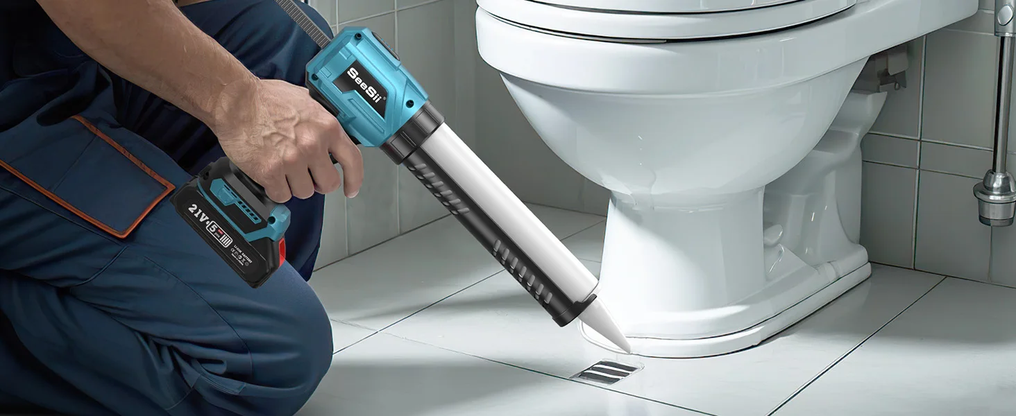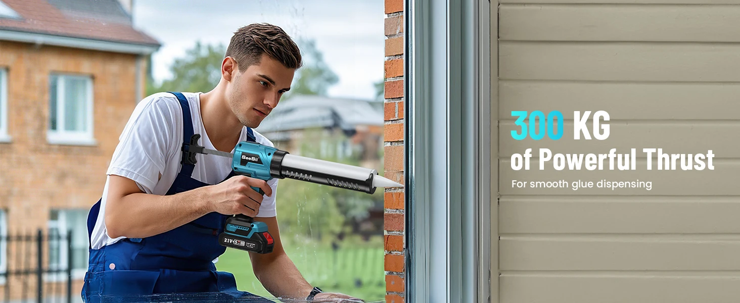 Seesii Cordless Caulking Gun 21V Battery Caulk Gun Electric Glue Gun 4 Speeds Auto Retract, Adhesive Gun Kit for Filling Sealing