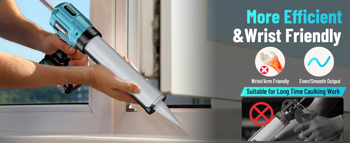 SAVES YOUR HANDS AND MUSCLES: A great cordless caulking gun when you need to do a lot of caulking,especially for long or medium runs. Say goodbye to the days of sore hands and constant squeezing of manual caulking guns