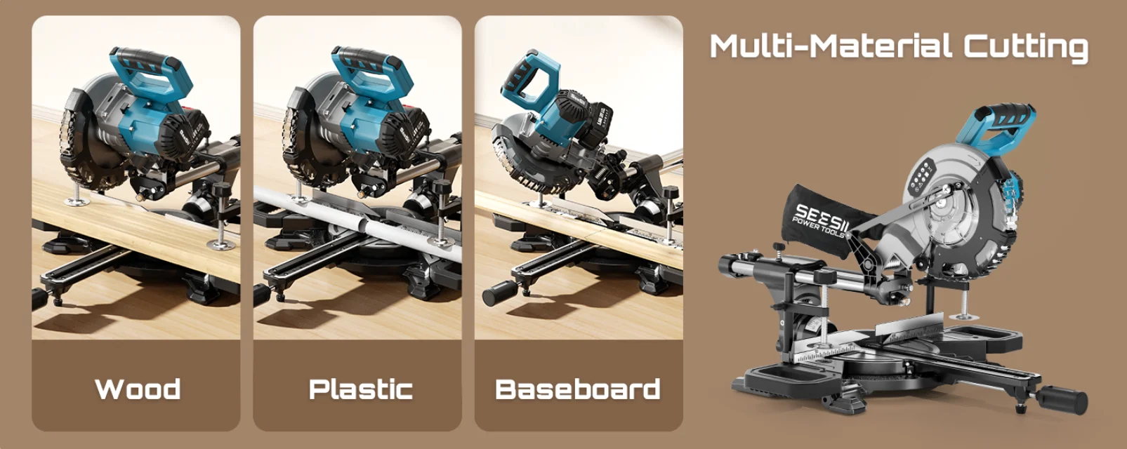 Sliding Rail & Extended Handle: The cordless sliding miter saw equipped with a 12-inch sliding rail system and extendable side supports, this miter saw delivers an expanded cutting capacity up to 4x12 inches, effortlessly handling wide boards, thick hardwoods, and large-scale projects—perfect for home renovations, woodworking, DIY, and professional remodeling.