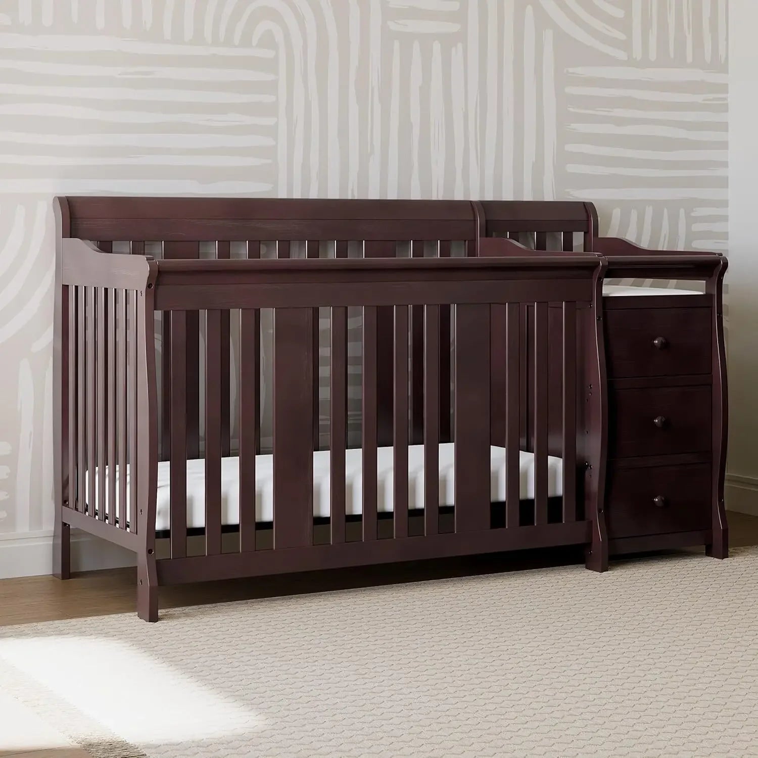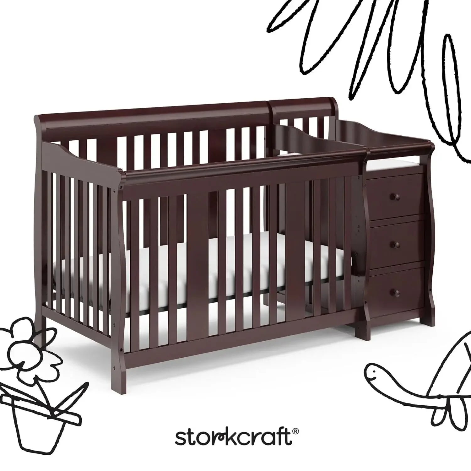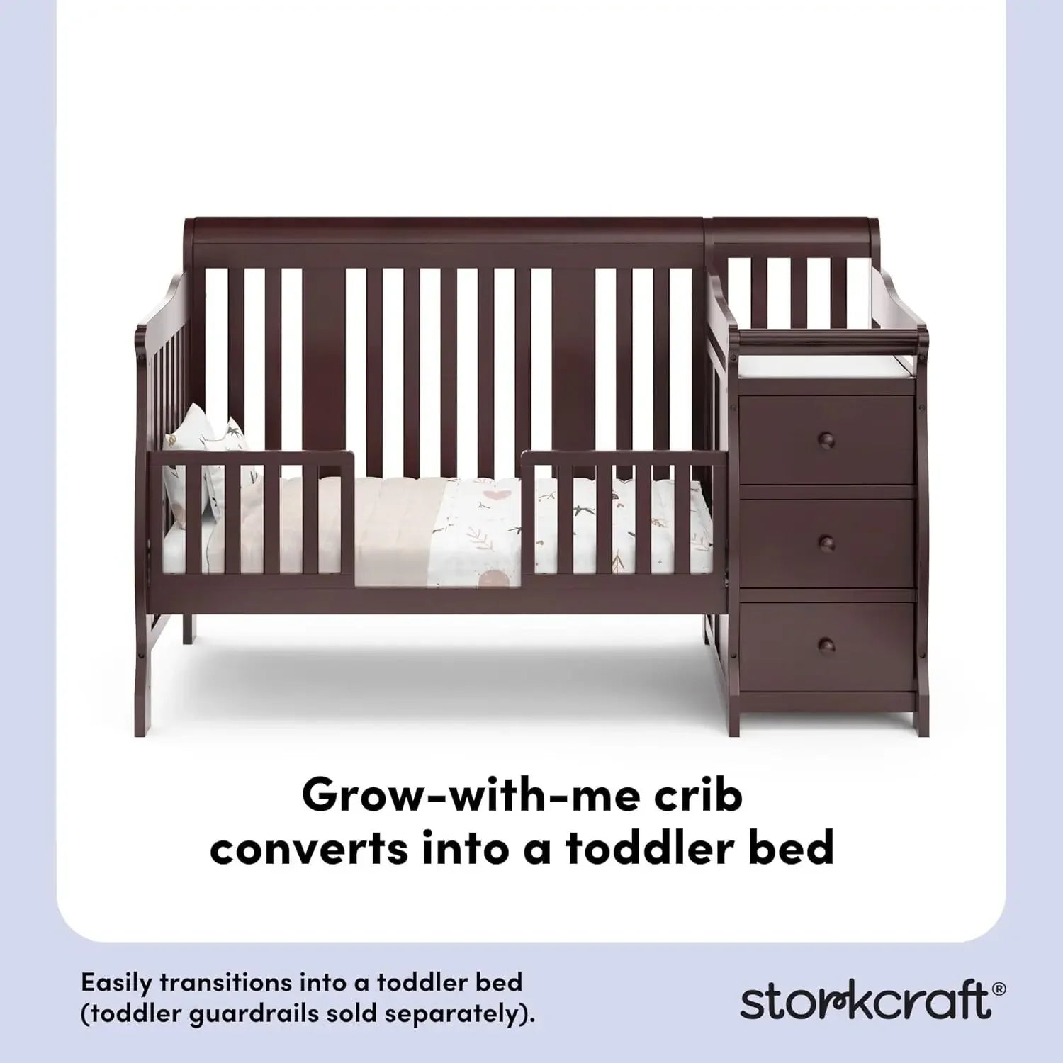Storkcraft Portofino 5-In-1 Convertible (Espresso) Crib And – Table Combination With 3 Drawers, Includes Baby Changing Pad, Can