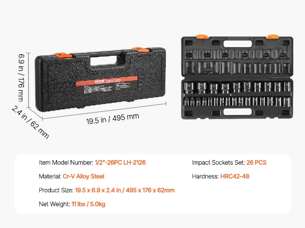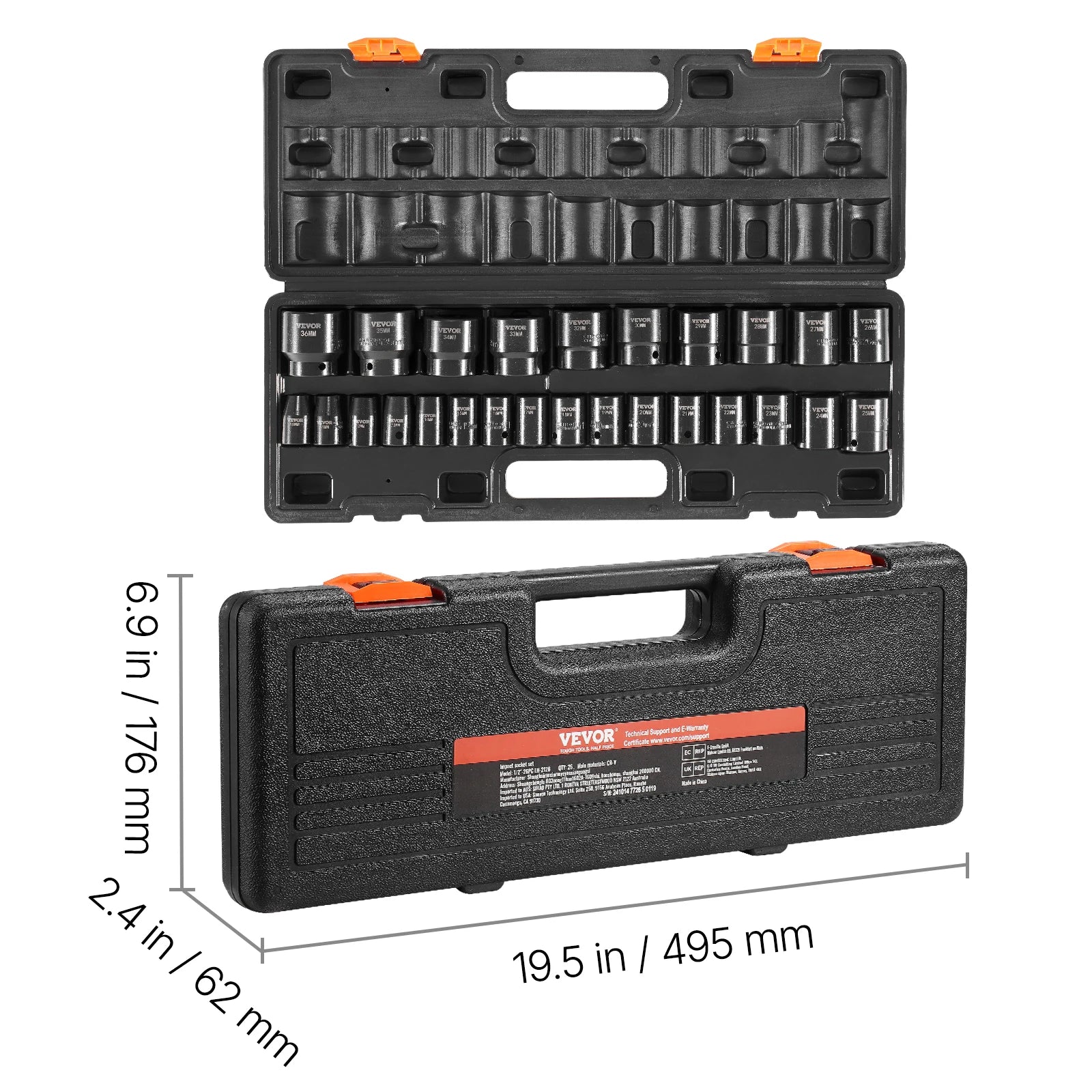 【26 SOCKETS INCLUDED】- This effort-saving 1/2 inches drive impact socket set comes with 26 shallow impact drive sockets: 10mm, 11mm, 12mm, 13mm, 14mm, 15mm, 16mm, 17mm, 18mm, 19mm, 20mm, 21mm, 22mm, 23mm, 24mm, 25mm, 26mm, 27mm, 28mm, 29mm, 30mm, 32mm, 33mm, 34mm, 35mm, 36mm.