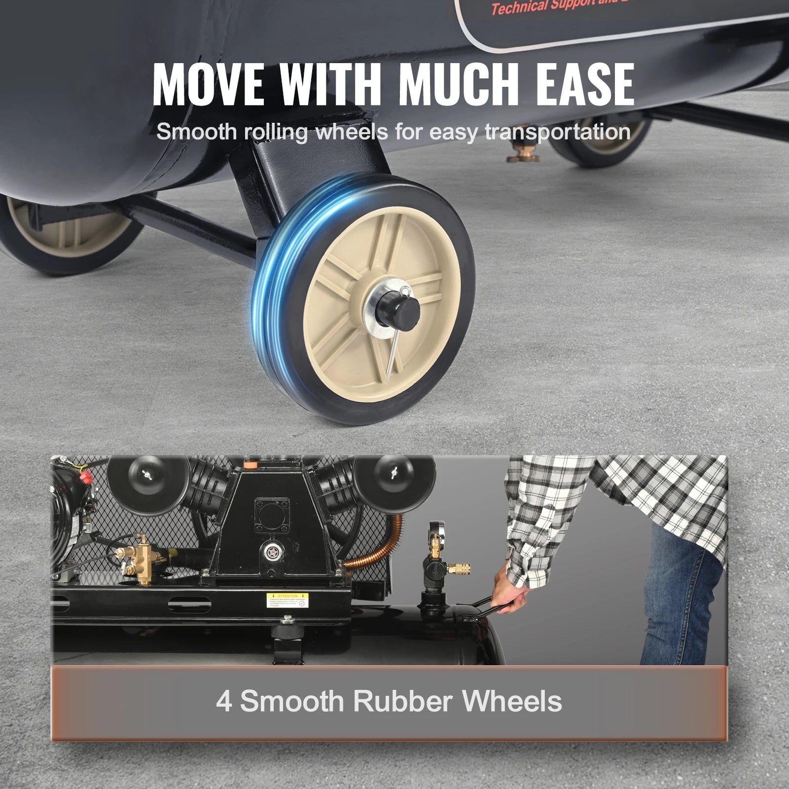 Fitted with 4 smooth-rolling wheels, this air compressor moves effortlessly, suitable for various locations and projects..