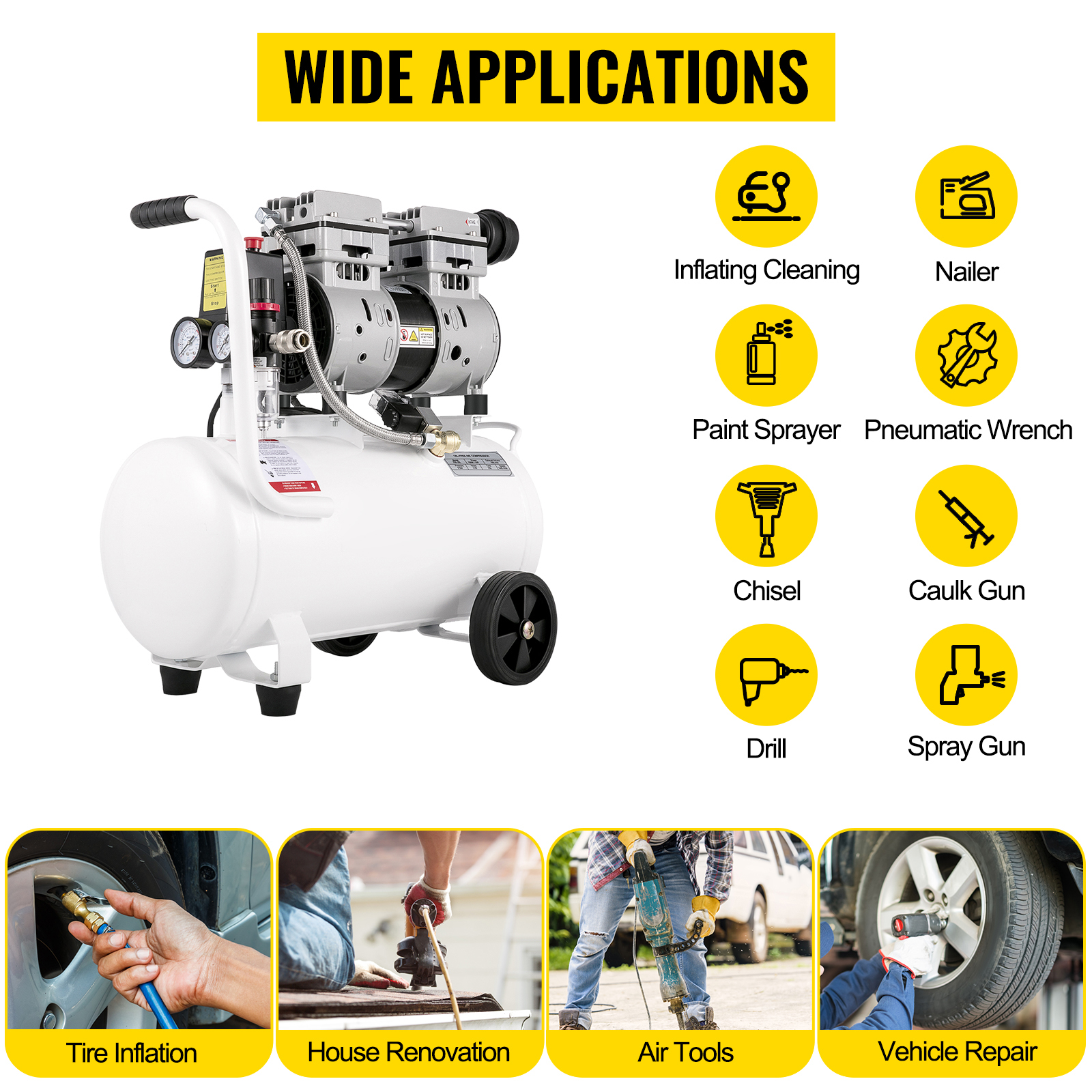 Versatile Applications: Suitable for a wide range of air tools used in tire inflation, vehicle repair, home renovation, and more. Compatible with drills, nailers, caulking guns, pneumatic wrenches, spray guns, chisels, paint sprayers, and other pneumatic tools.
