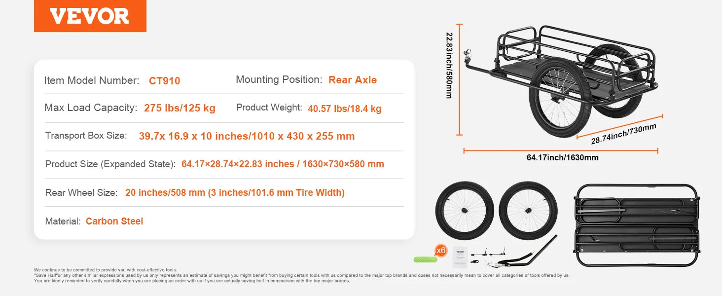 Industrial-Grade Material: Crafted from industrial-grade materials, the bicycle trailer features a robust steel frame with a powder-coated surface for rust resistance. This construction ensures long-lasting cleanliness and a sleek appearance while promising structural stability and durability.