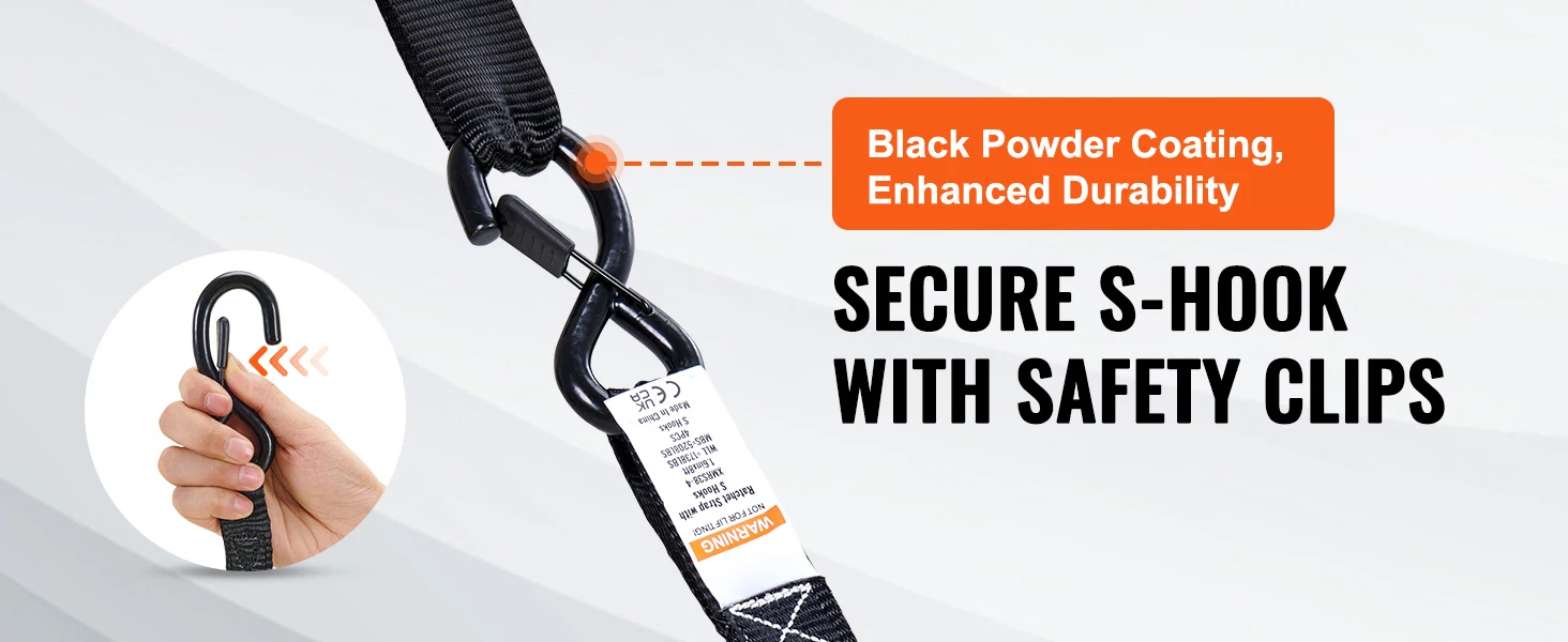 The SucceBuy ratchet and hooks are coated to withstand the elements and made of sturdy steel, ensuring long-lasting durability and reusability.