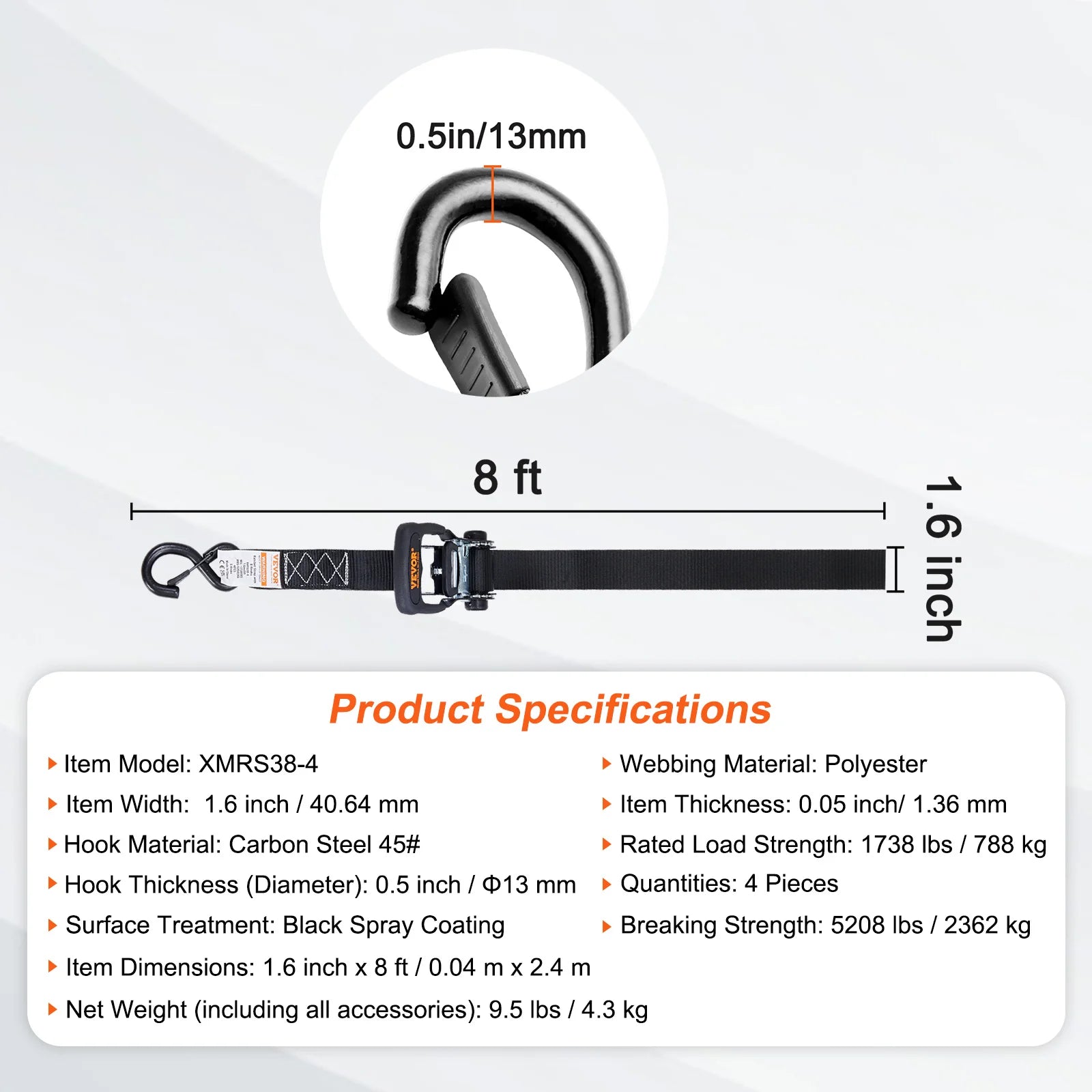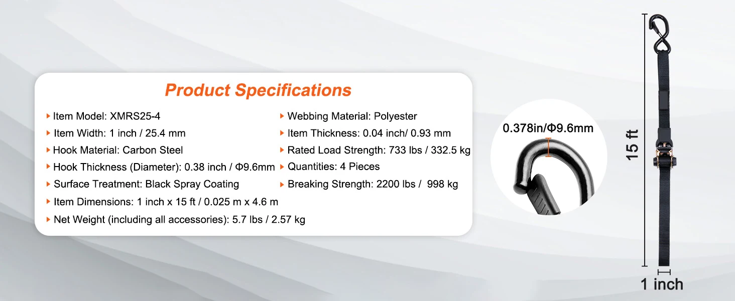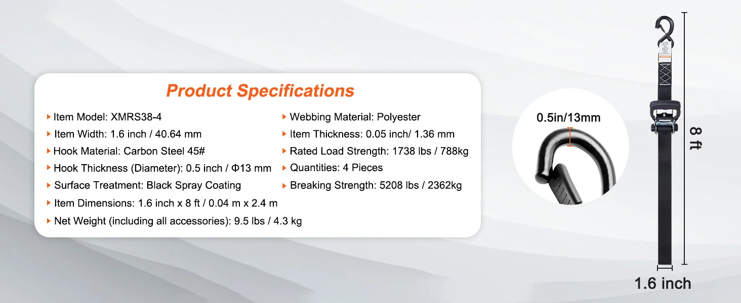 Comes with rich accessories to meet your work requirements without the need for additional preparations. The included bag allows you to store your ratchet straps conveniently.