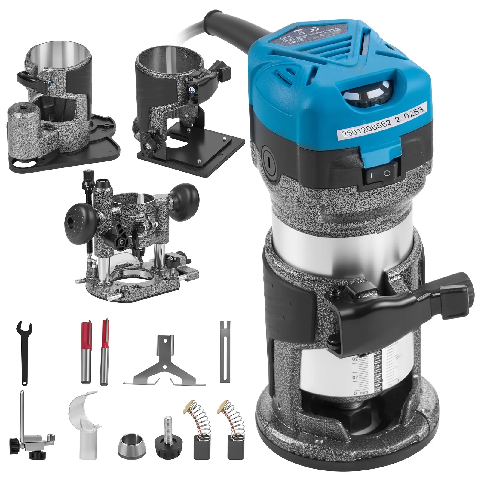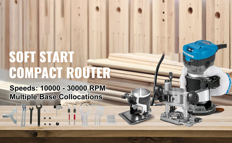 SucceBuy 800W Soft Start Compact Router Kit Variable Speed 10000-30000Rpm with Fixed Base, Plunge Base, Tilt Base and Offse Base