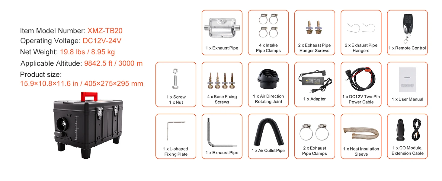 Quiet Operation: This 8kw diesel heater is designed with a premium muffler and fuel pump to minimize noise, operating at ≤75dB. Enjoy a warm, uninterrupted sleep during RV stays or outdoor camping, free from the cold.