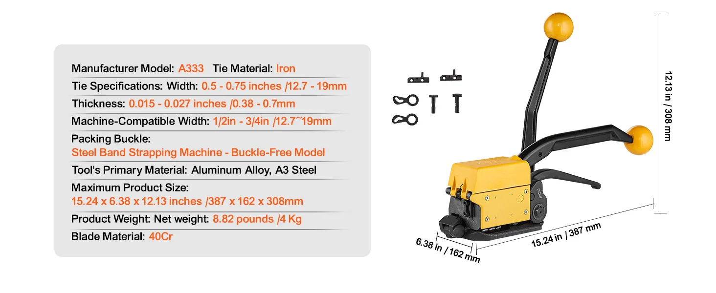 SucceBuy A333 Manual Sealless Steel Strapping Machine Bander Belt Packaging Binding Machinery Tool for 12.7-19mm Steel Strap