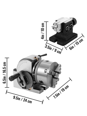 Tailstock Dimensions: 3.5" x 6" x 4" (9 x 15 x 10 cm)