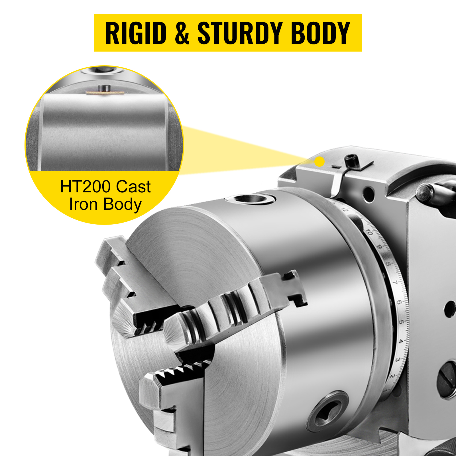 Solid Cast Iron Construction: Constructed from durable cast iron, this dividing head boasts a wear-resistant mirror finish and robust build, making it ideal for long-term use. Its design allows for accurate mathematical division of materials, ensuring consistent and reliable performance.