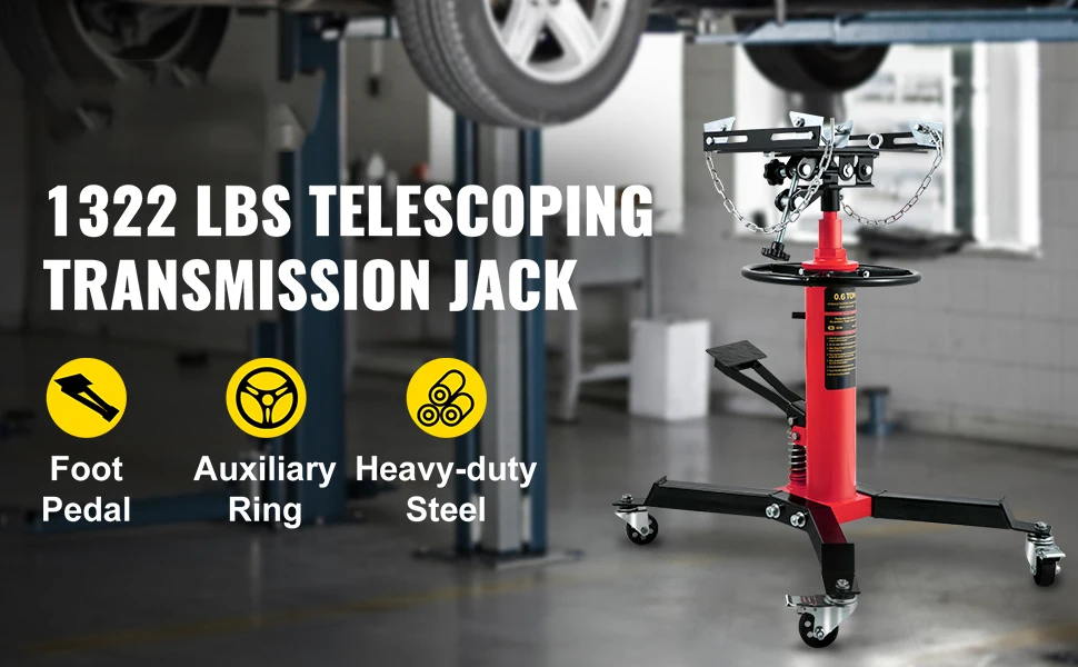 1322 LBS-1660 LBS Loading Capacity: Our 1322 lbs- 1660 lbs 2-stage hydraulic telescoping transmission jack helps you easily guide a transmission securely. Great for any automotive or light truck transmission installation or removal. See where the problem is and solve it with a quality transmission jack.