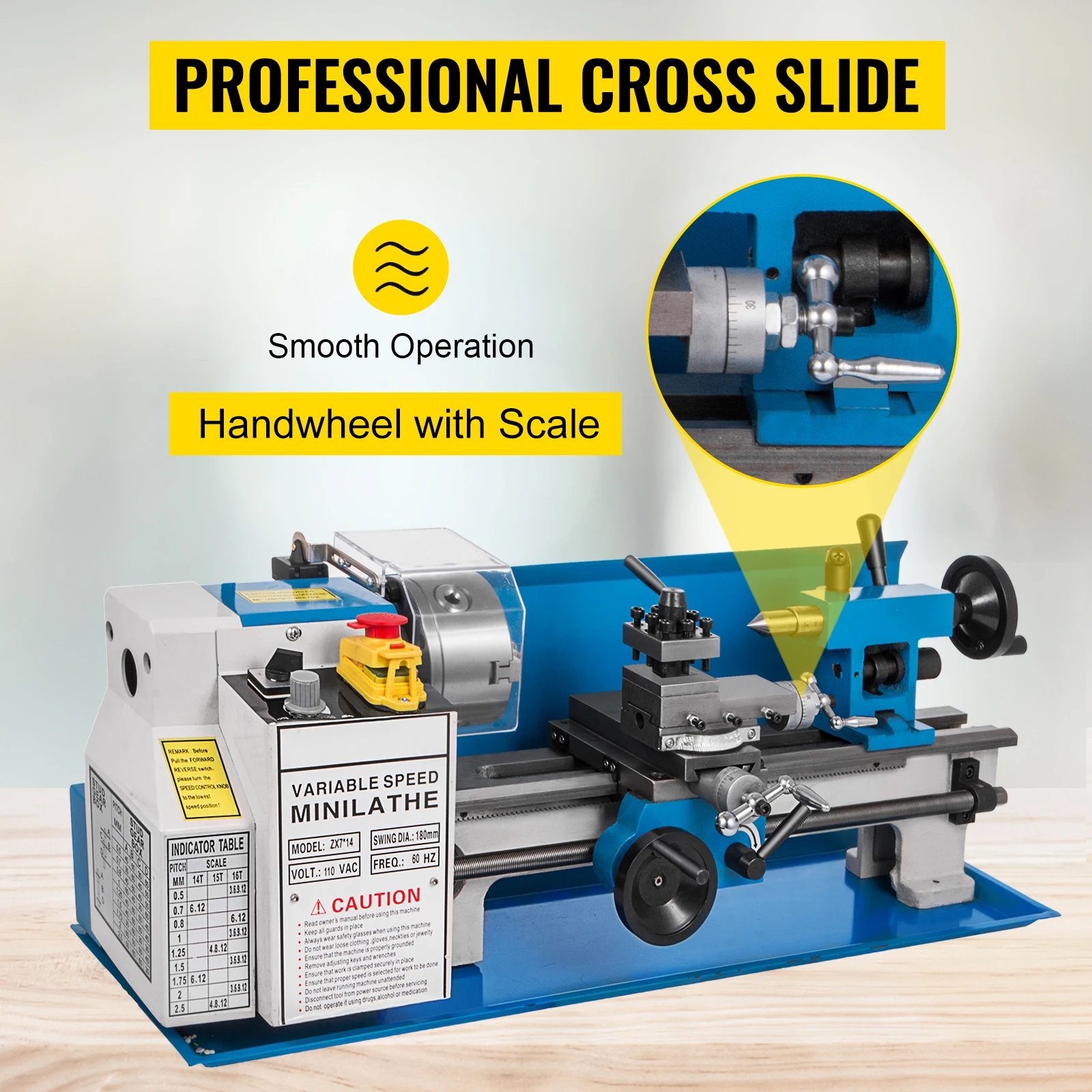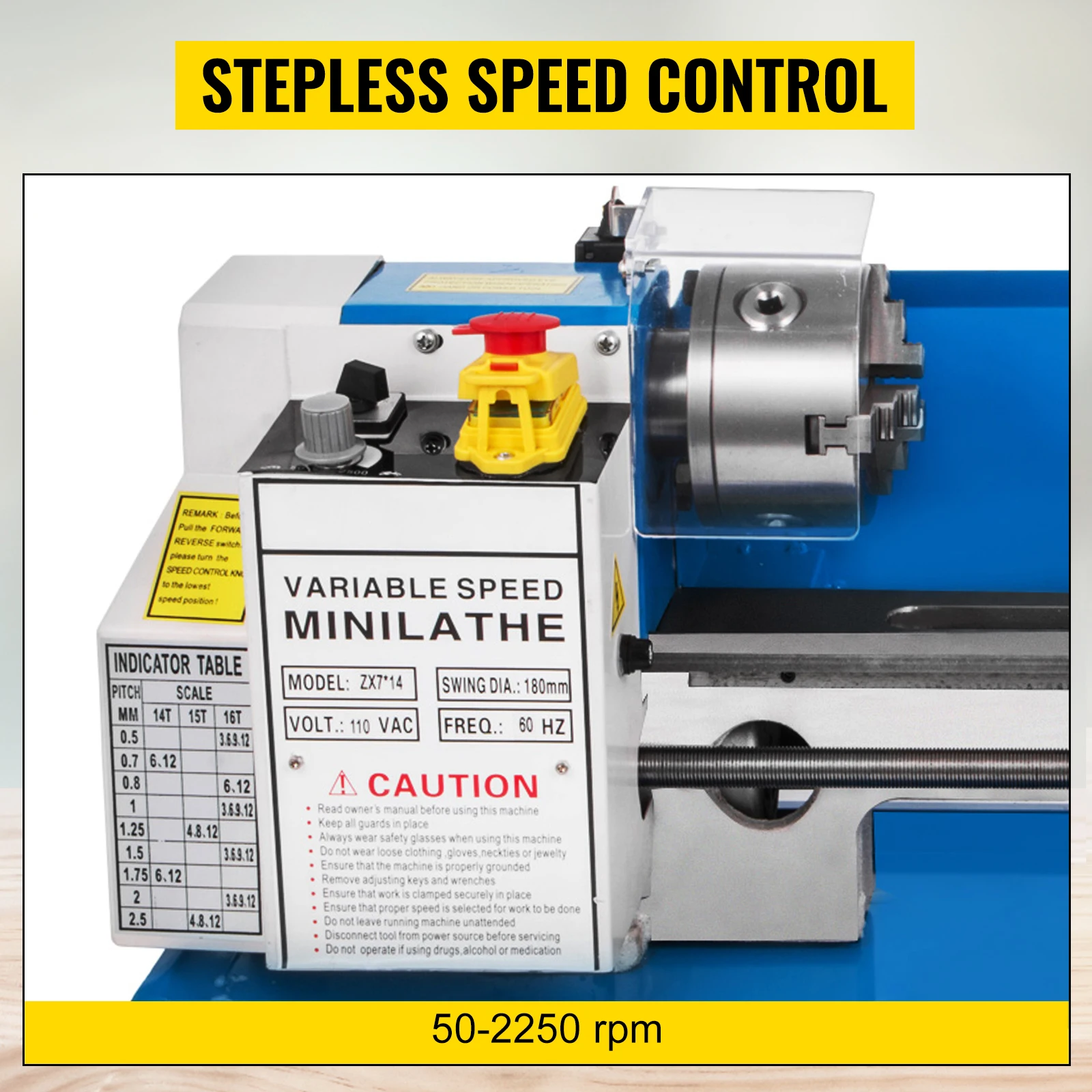 【Large Working Capacity】: This metal working lathe cranks out 550W and handles small to medium projects. It provides a 7.09" / 180 mm swing over bed and 13.78" / 350 mm center distance so that you can manage more extensive projects.