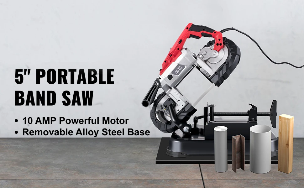 SucceBuy Portable BandSaw 5Inch Cutting Capacity Cordless Variable Speed 10Amp Motor Deep Cut Bandsaw for Metal Wood Pipes Rebar