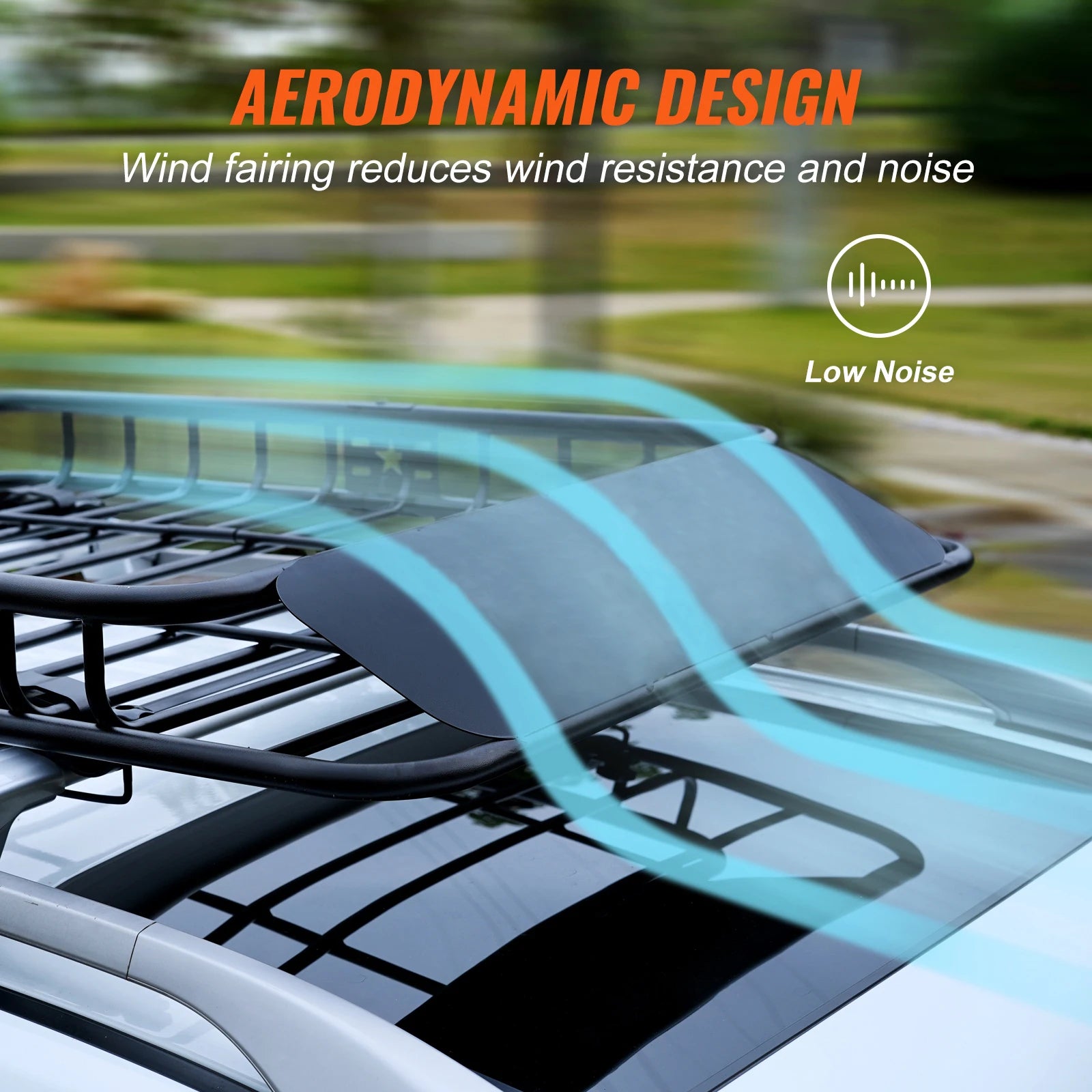 Aerodynamic Design: The front of the roof cargo rack is equipped with a wind fairing to reduce resistance and wind noise. The cargo basket is designed with a curved corner to avoid scratches and accidental injuries when loading and unloading cargo.