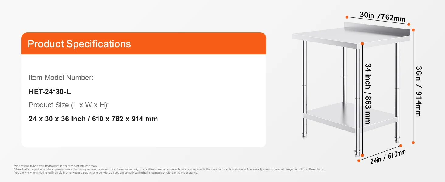 Practical Sizes: Available in various sizes to perfectly fit your kitchen needs. Whether for commercial kitchens, home renovations, or your garage setup, our professional-grade stainless steel work table series is designed for lasting performance and reliability. We recommend measuring your space before purchasing.