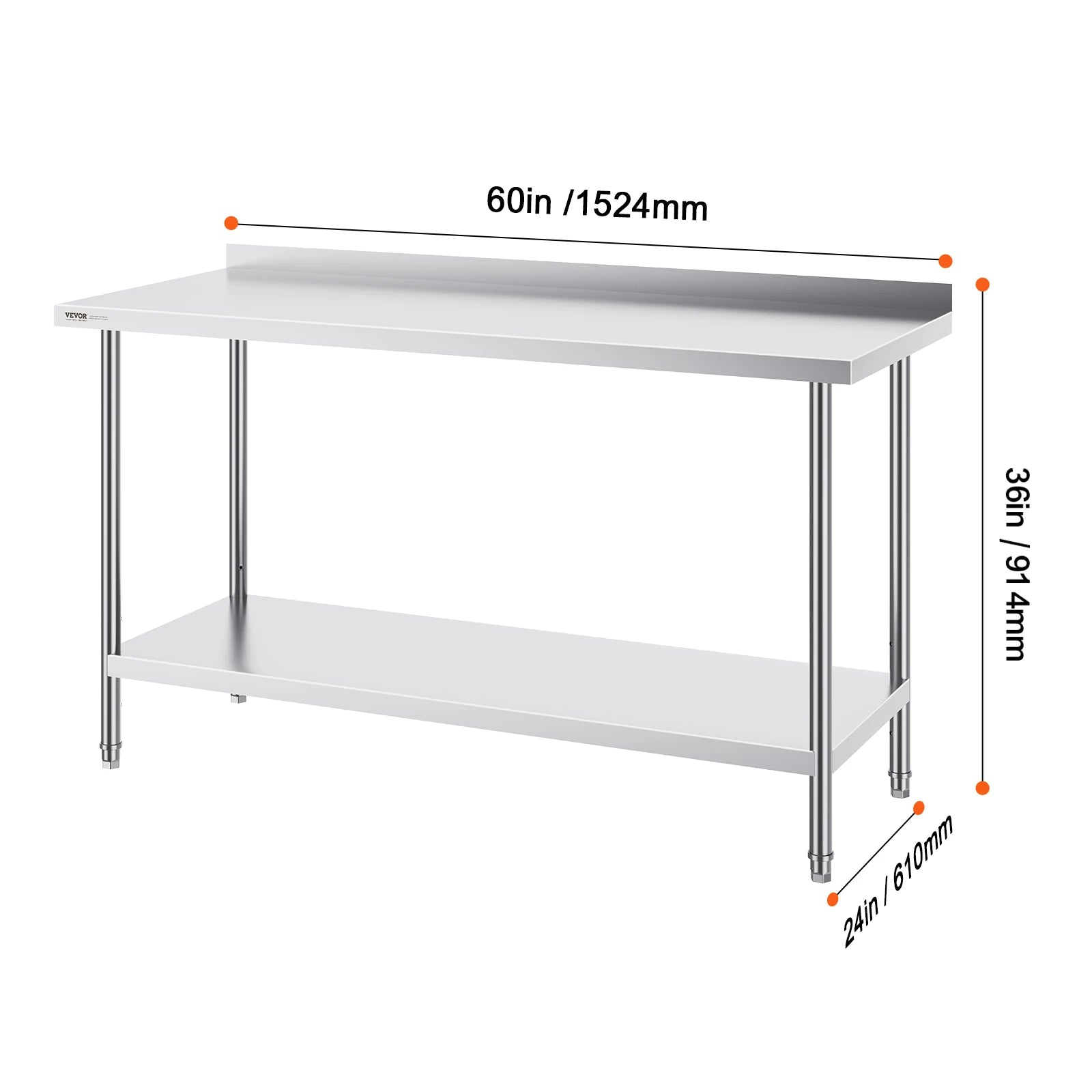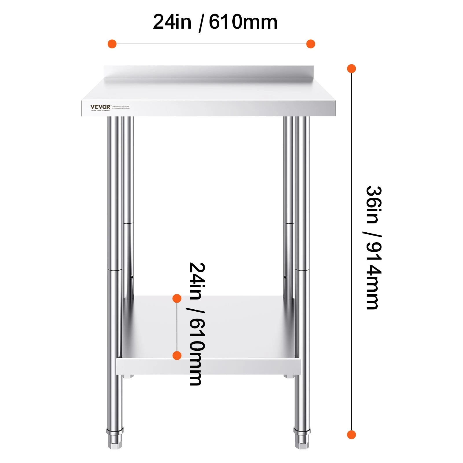 User-Friendly Design: Featuring 3-level adjustable shelves, this work table offers the most user-friendly and practical functionality. Simply adjust the shelf height with screws to accommodate items of different sizes. The high rear backsplash prevents items from falling off and guards against water splashes.