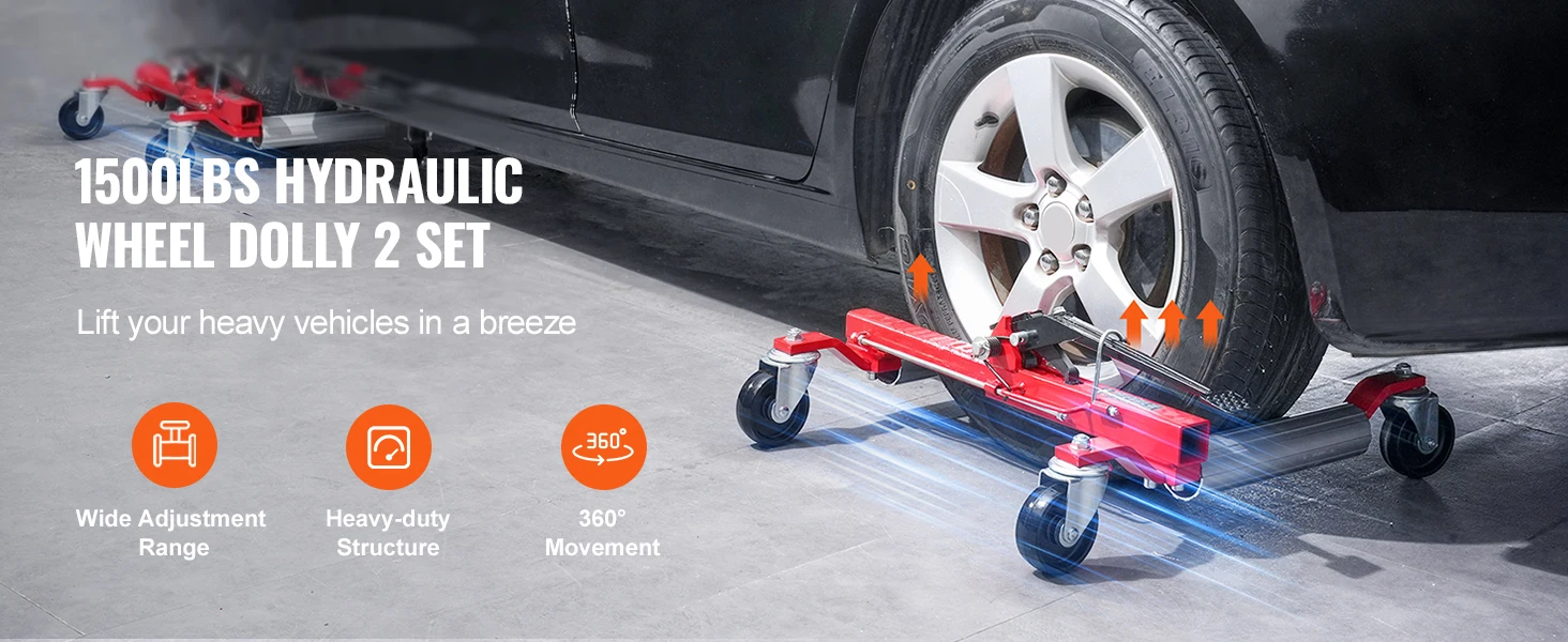Enhanced Load Capacity: This ratchet wheel dolly (2 set) easily lifts vehicles up to 1500 lbs(each wheel dolly). Its robust capacity makes it suitable for cars, SUVs, home vehicles, large SUVs, pickups, ATVs, tractors, and more. It facilitates easy movement, maintenance, and tire changes in tight spaces.
