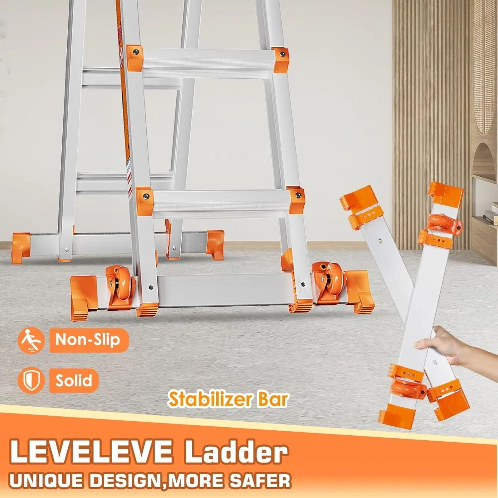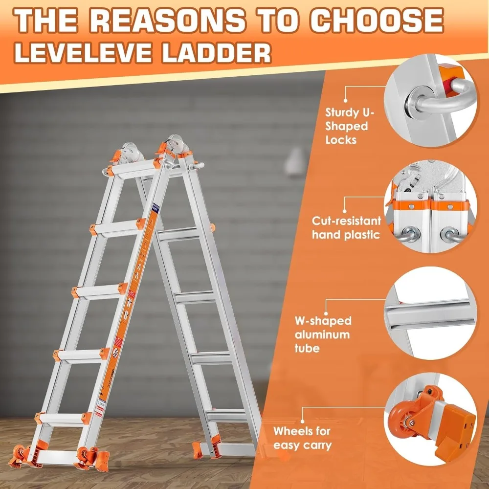 Versatile Ladder: This ladder can be converted into a step ladder, A-frame ladder, telescopic ladder, right-angle ladder, or scaffold, making it an ideal choice for both indoor and outdoor tasks. Its versatility enhances efficiency and meets a wide range of work requirements.