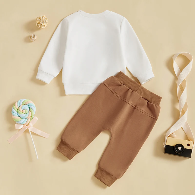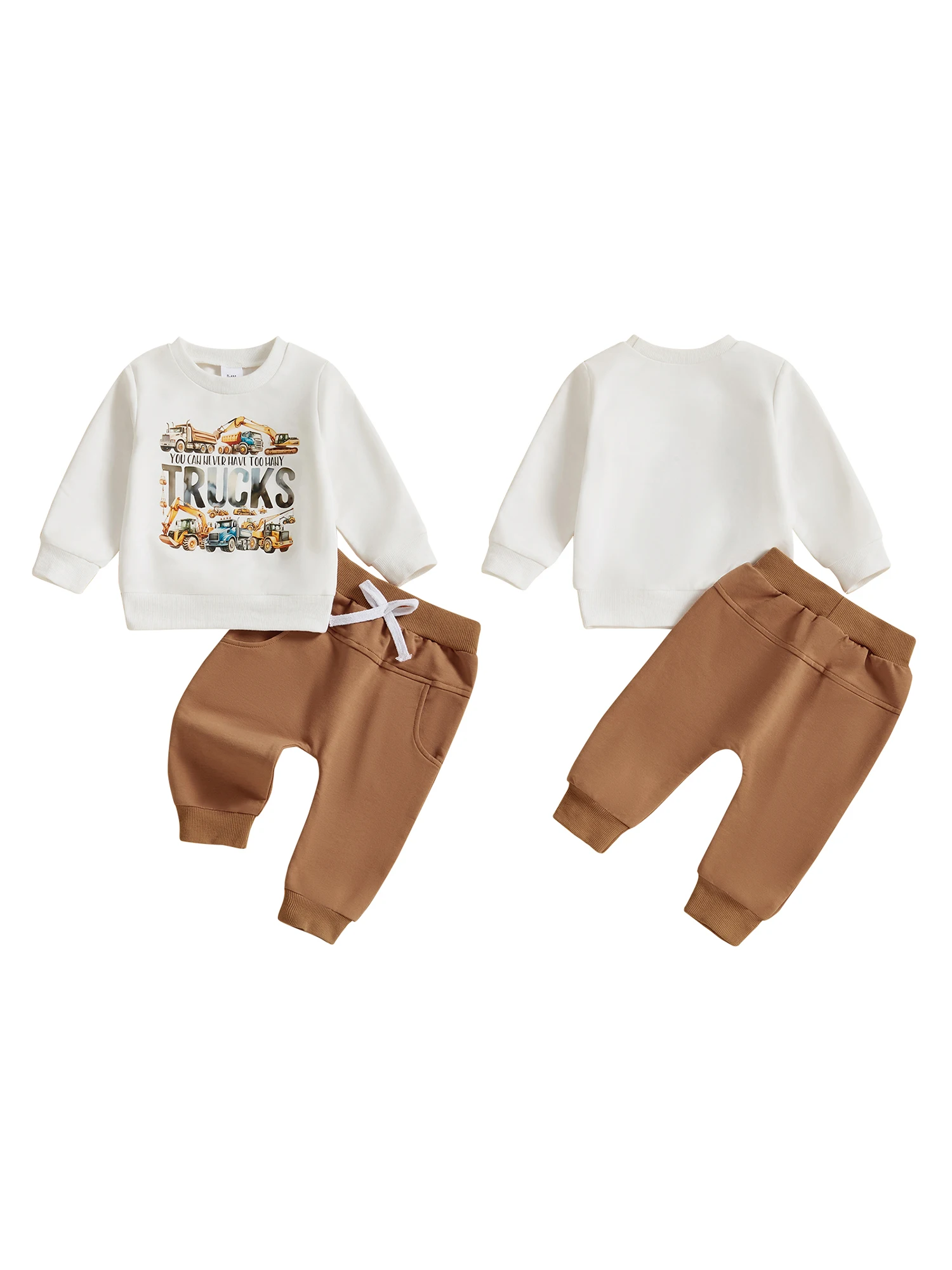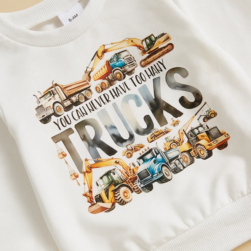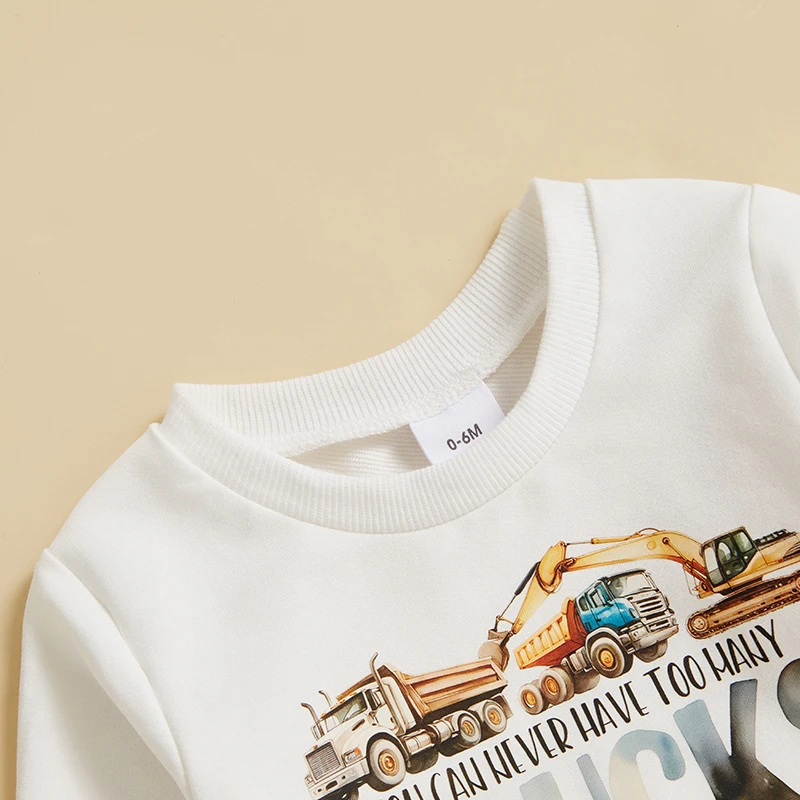 Baby Toddler Boy Fall Outfits Construction Truck Print Long Sleeve Sweatshirt Solid Long Pants 2 Pcs SetSize (cm)