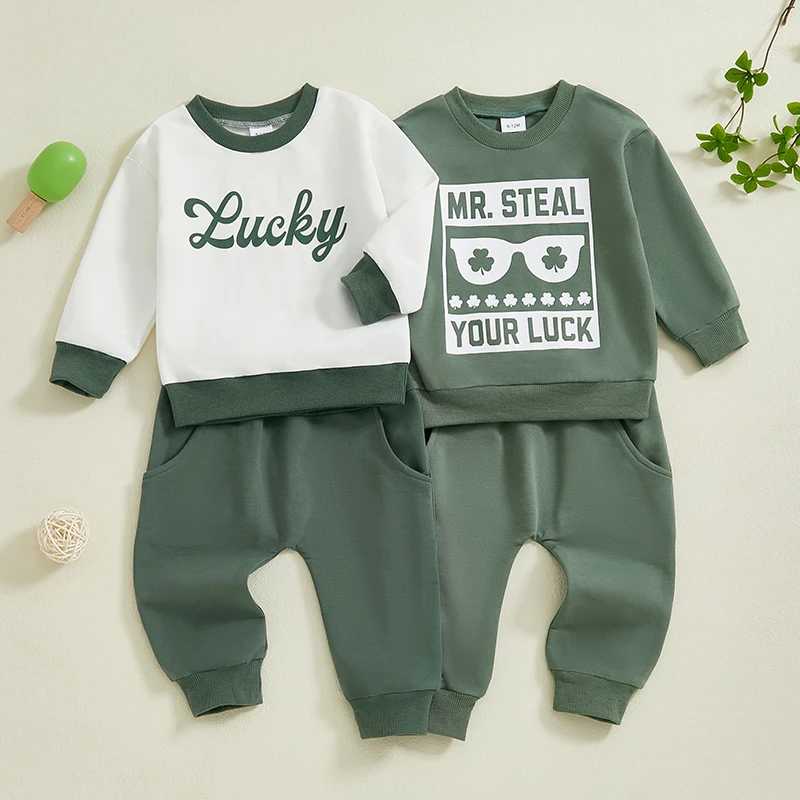 Baby Boys Pants Set, Long Sleeve Crew Neck Letters Print Sweatshirt with Elastic Waist Sweatpants Infant ClothesThe baby boys pants set is a must-have outfit for baby boys in autumn, he will love it! Easy outfit!
