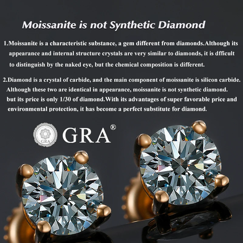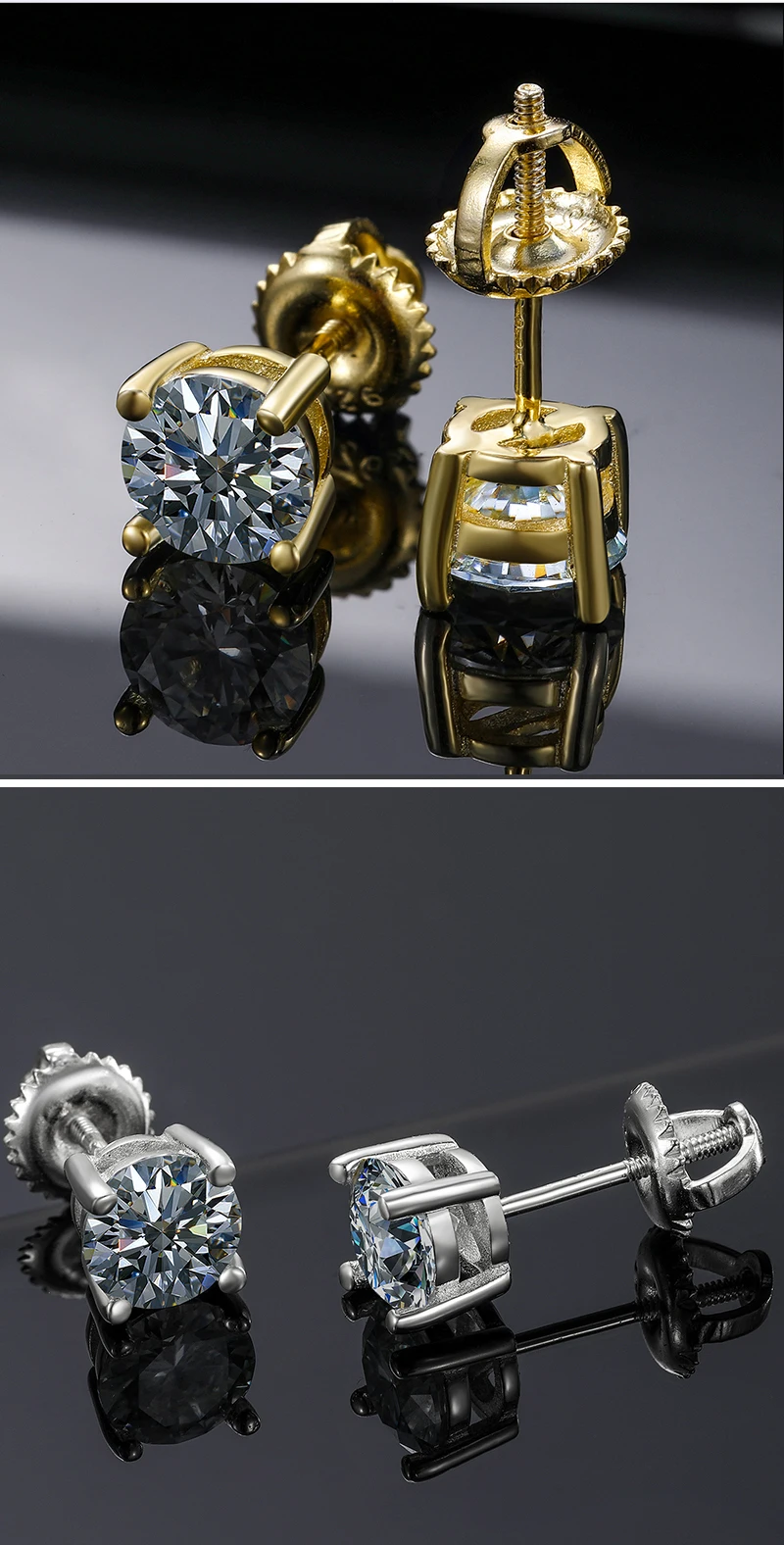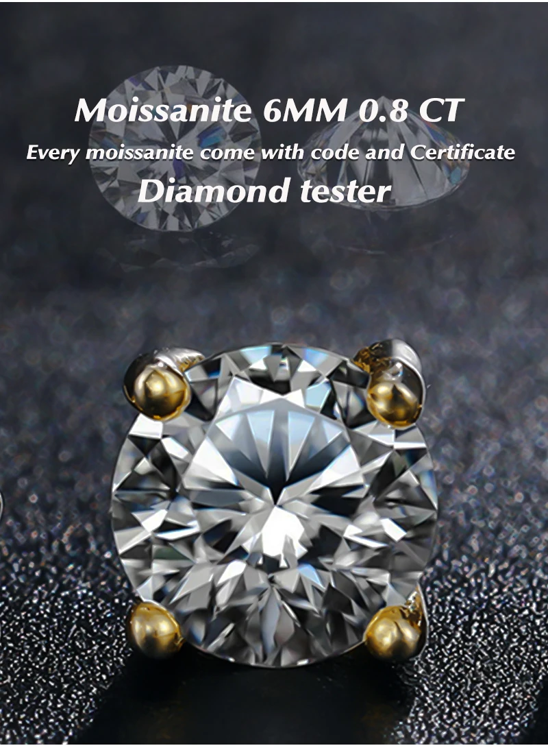 Top Quality 6mm 0.8CT Moissanite Earrings For Women 14K Gold Plated 925 Sterling Silver Earrings