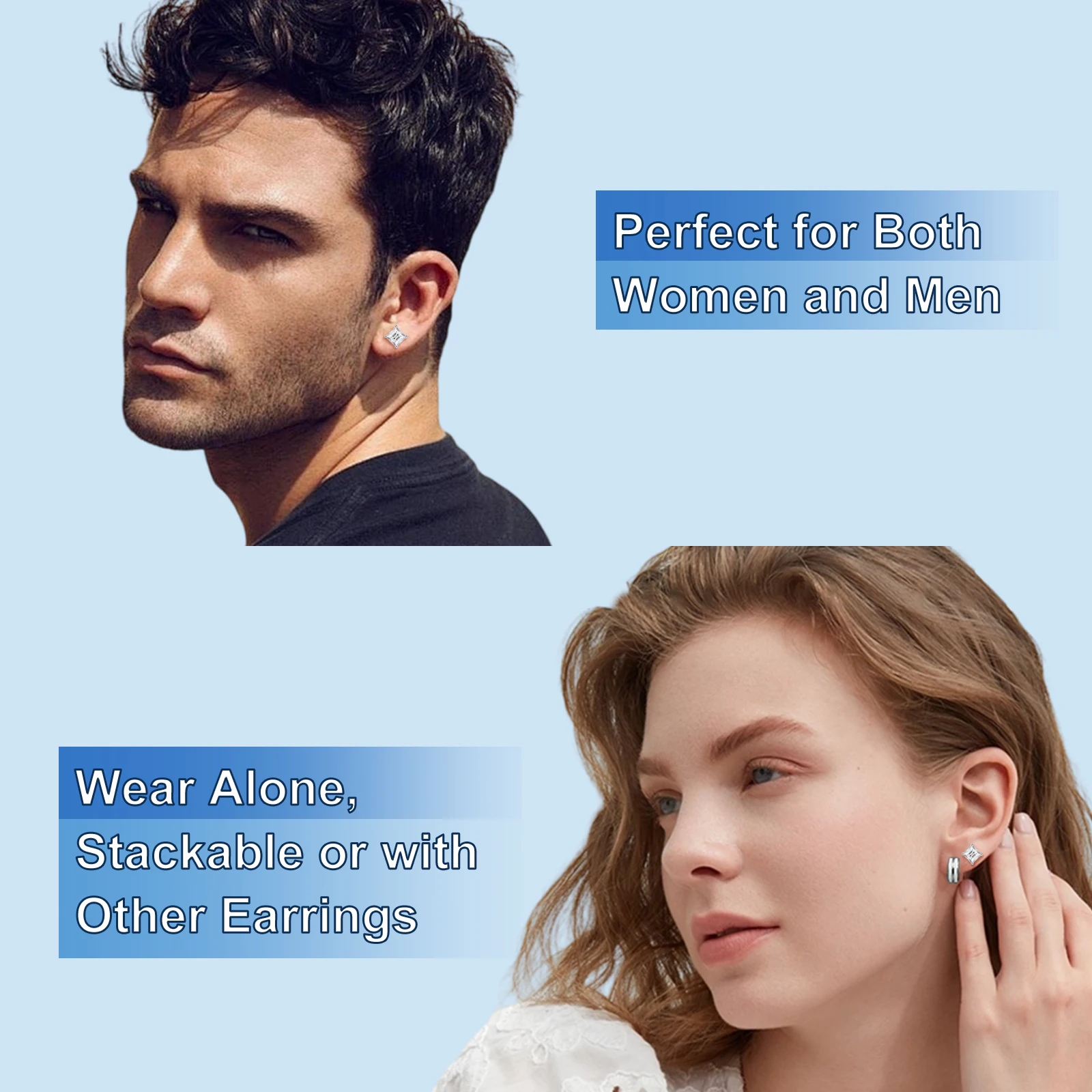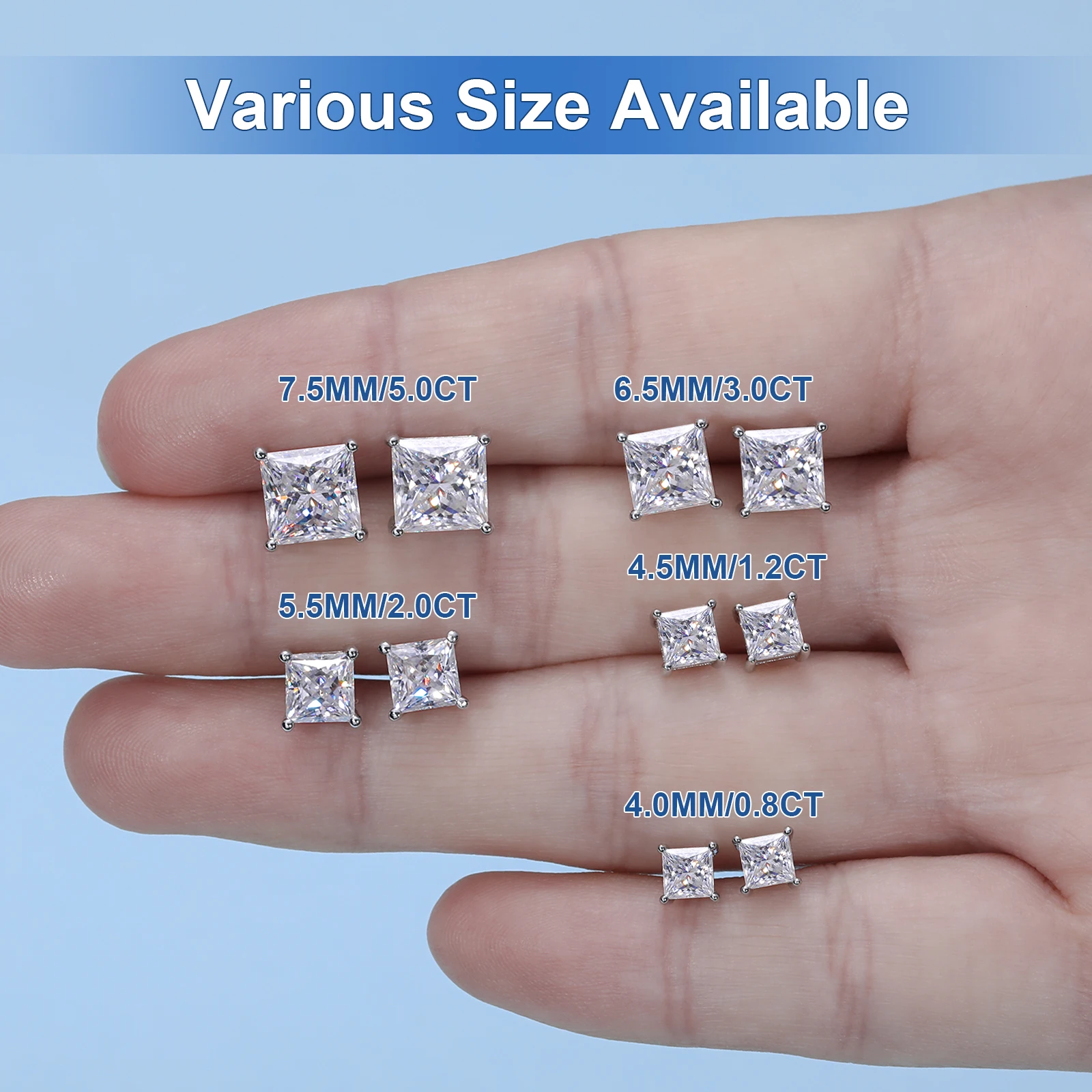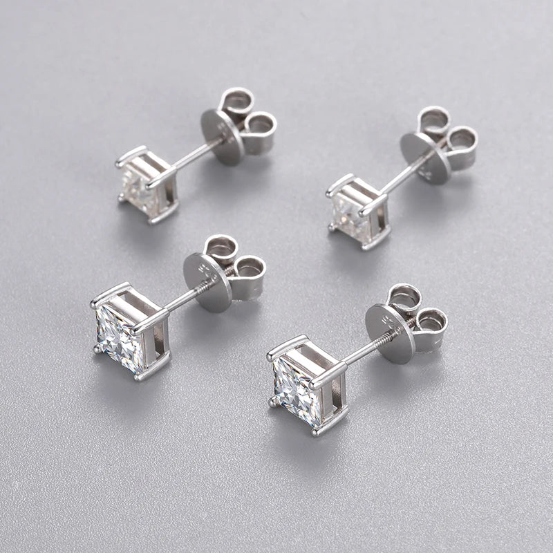 TUHE Unisex VVS1 Square Moissanite Women Earrings 925 Silver Fine Jewelry Earings 4MM/5MM Silver 925 Fashion Earrings Women Gift