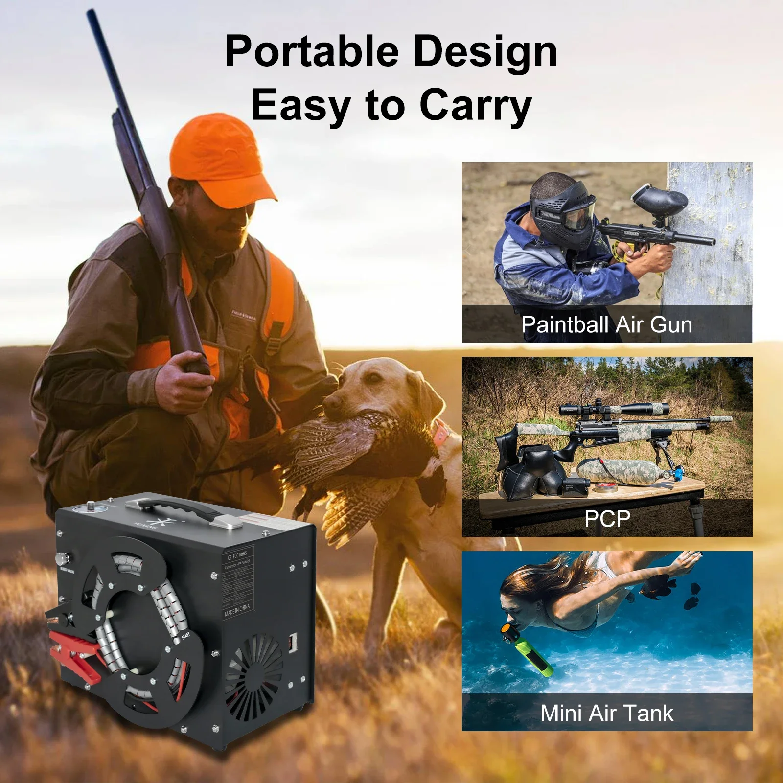 TUXING 300Bar PCP Auto-stop Air Compressor 4500Psi High Pressure Portable Compressor Built-in Power Adapter for Diving TXES062