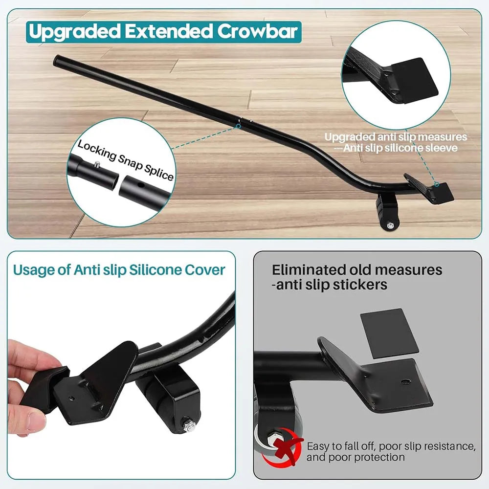 🏆⚒️【High Quality Material】Heavy duty dolly made of thickened carbon steel,After stamping treatment, it is more sturdy,reinforced steel base,widened and thickened silent rubber wheels can move flexibly without hurting the floor,longer carbon steel pry bar can save your strength and lift objects easily.