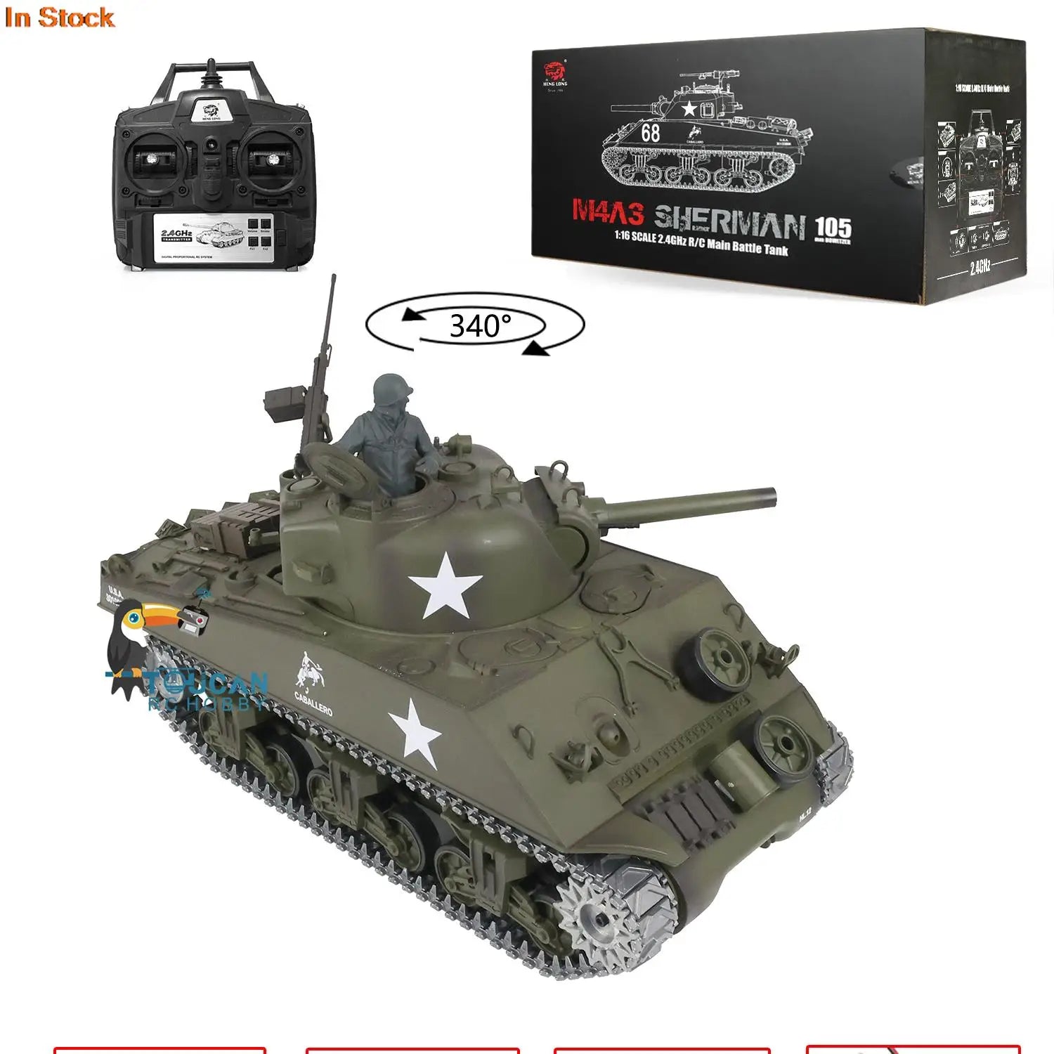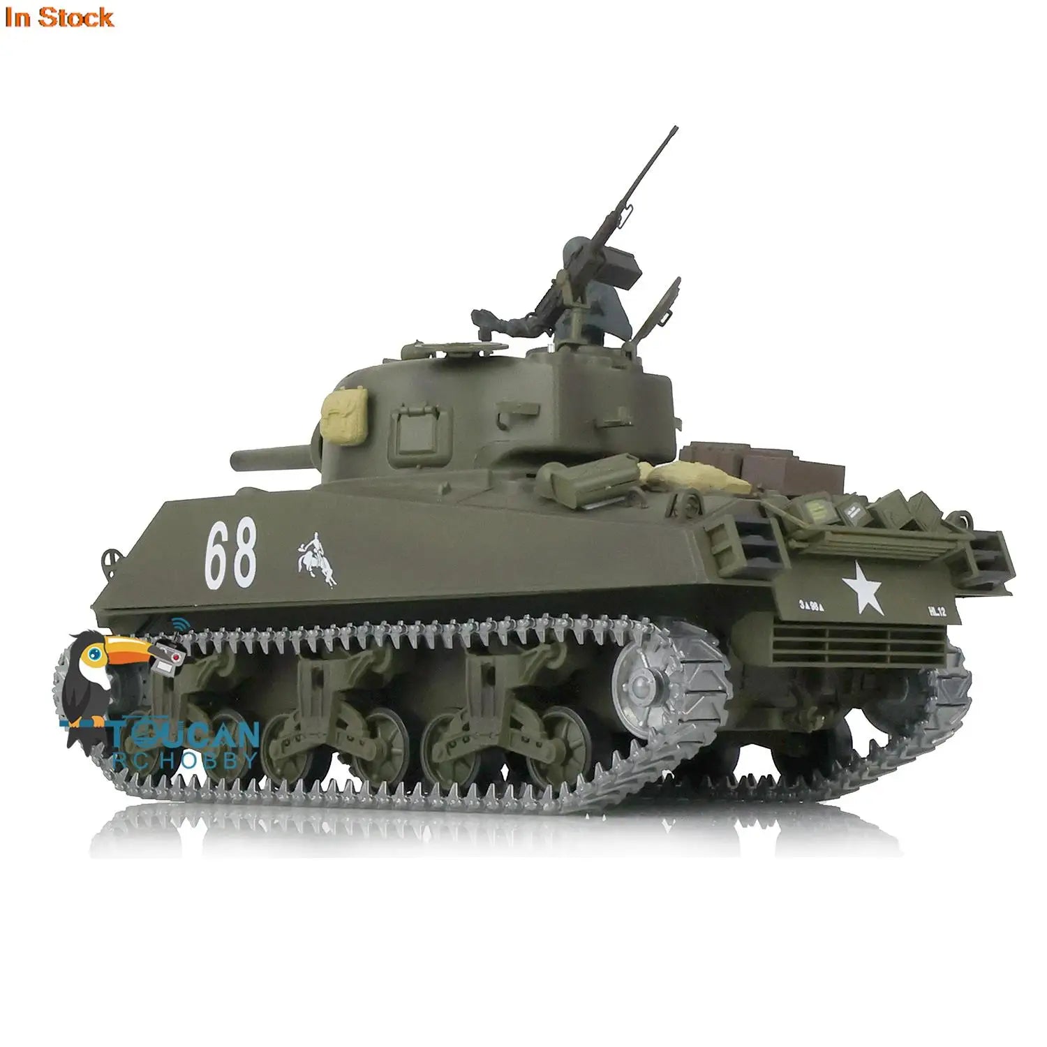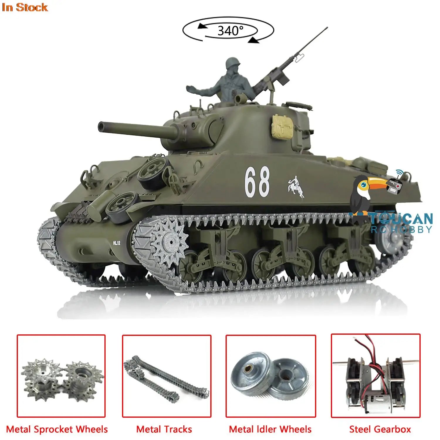 US Stock 1/16 HENG LONG RC Tank 3898 7.0 Upgraded M4A3 Sherman RTR 2.4G Metal Tracks Remote Control Panzer Toy Model Gifts