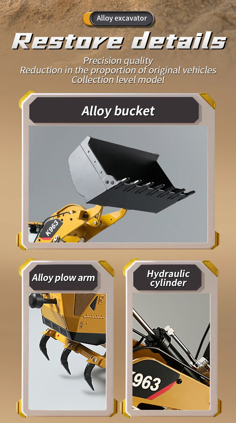 US Stock 1/16 KABOLITE K963 RC Metal Loader Hydraulic Construction Model TOUCAN Assembled Machine Light System Rear Plow RC Toy